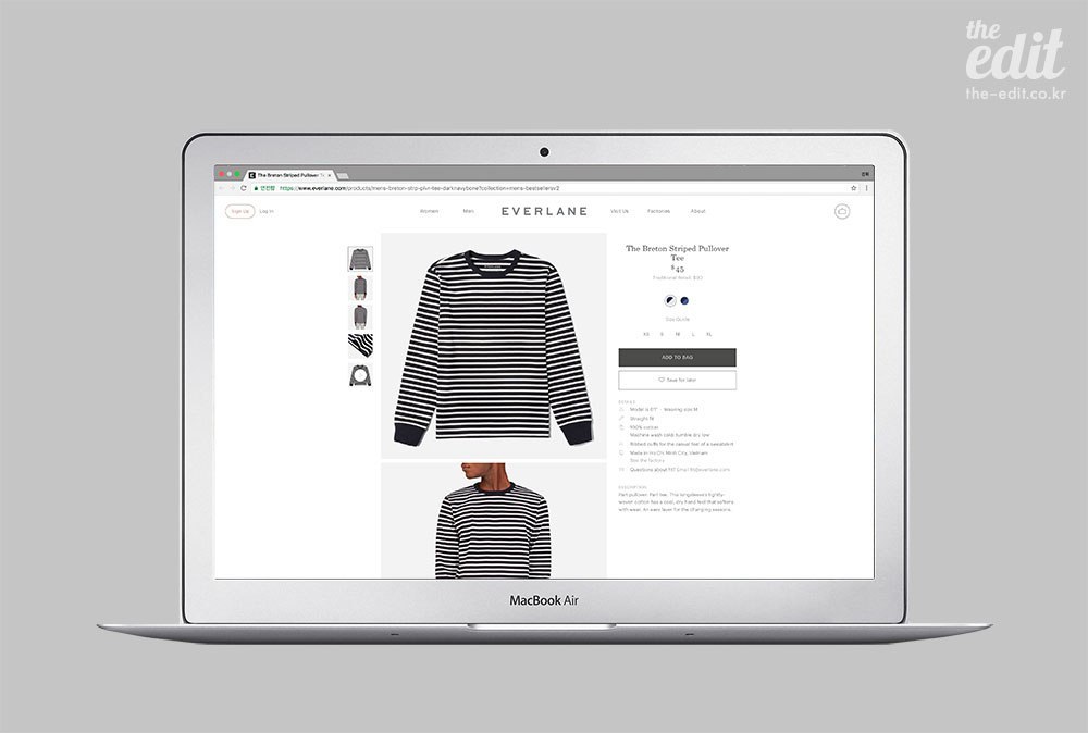 하지만 원가를 투명하게 공개하고 옷이 만들어지는 뒷단의 이야기까지 모두 챙기는 그런 세심함을 어떻게 그냥 지나칠 수 있을까. 사는 즐거움이란 이런 것이 아닐까. 다행히 많은 사람들이 벌써 나와 같은 생각을 한 모양이다. 2010년에 시작한 에버레인은 벌써 기업가치가 2억 5,000만달러에 달할 정도로 성장했다. 한 가지 아쉬운 건, 우리나라에는 배송을 하지 않는다는 것. 원한다면 구매대행을 해야 한다.