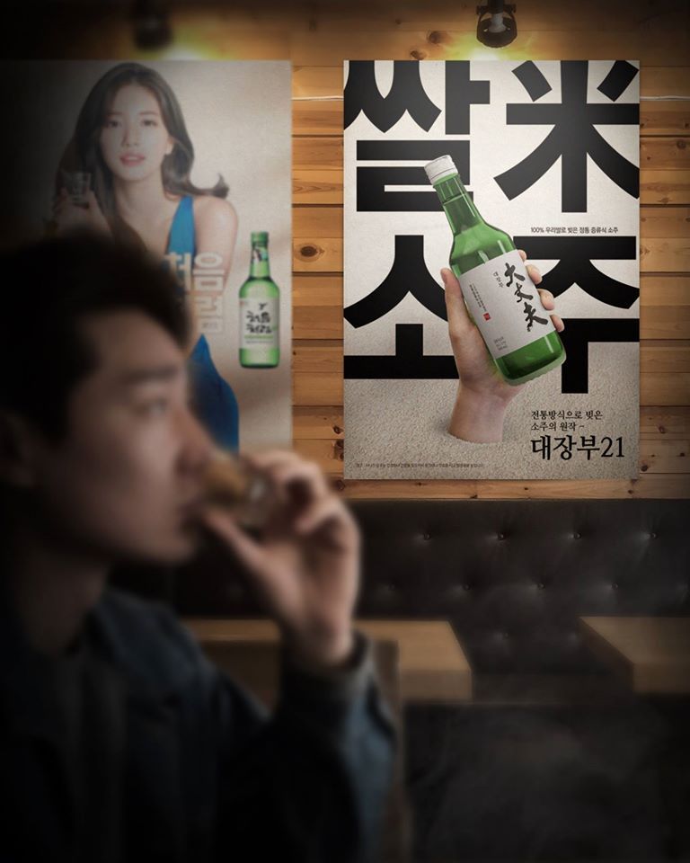 대장부 21은 100%우리 쌀 외피를 깎아내고, 15℃ 이하의 저온에서 발효와 숙성을 거친다. 우리가 소주를 빚을 것도 아니고, 이런 설명은 지루하다. 그래서 다른게 뭐라고? 역시 가격이다. 현재 증류식 소주의 가격은 2만원대로 형성되어 있다. 하지만 우리는 이제 고기집에서 단돈 5,000원으로 증류식 소주를, 아니 대장부를 마실 수 있다. 이 놀라운 가격엔 병의 역할이 크다. 대부분 증류식 소주가 전용병에 담긴 것과 달리 대장부는 일반 희석식 소주와 동일하게 360ml 용량의 녹색 공용 소주병에 담아냈다. 판도 잘 깔아놨다. 요즘 웬만한데서는 대장부를 시킬 수 있다. 심지어 편의점에서도 판다. 술은 유통이다. 아무리 맛이 좋다고 소문이 나도 유통이 원활하지 않으면 소비자에게 다가갈 방법은 없다.