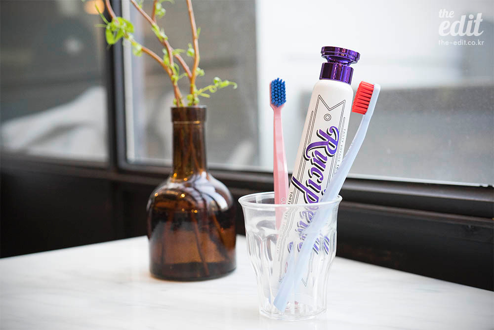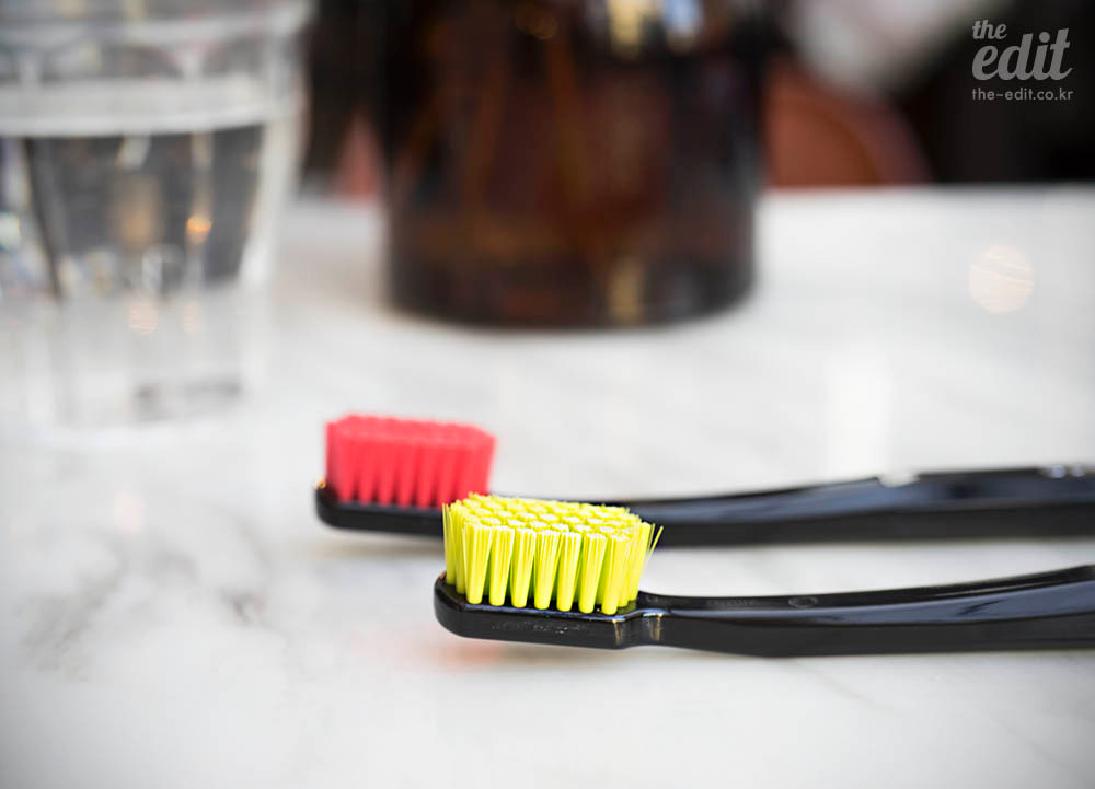 힘을 주지 않아도 치아에 착 밀착된다. 앞니부터 치카치카. 칫솔모를 손으로 만졌을 땐, 너무 부드러워서 솔직히 좀 걱정이었는데, 막상 양치를 하니 마냥 부드럽다기보다는 꽤 단단한 느낌이다. 가볍게 손목을 움직이면서 머리를 굴려본다. 이, 느낌 굉장히 익숙한데? 어디서 느껴봤더라… 그래. 바로 모공브러시로 내 이를 닦는 기분이다. 아아, 내 이에 있는 치석이 블랙헤드라면, 넌 블랙헤드 브레이커. 그동안의 칫솔질은 사실 꼼꼼함을 가장한 우악스러움이었구나. 부드러운 칫솔모는 어디도 놓치지 않고 뽀득뽀득 닦아낸다. 잇몸과 가까운 곳까지 칫솔모가 닿아도 아프지 않고 개운하다. 양치를 좋아하지 않는 에디터H가 말했다. 평소 양치 할 때마다 피가 나는데, 이건 시원하면서도 피가 나지 않아 좋았단다.