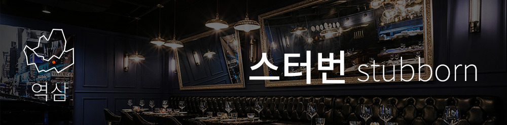 나라마다 음식의 고유한 결이 존재한다. 미국 음식은 꽉 찬 맛이다. 그게 양이든 맛이든. 역삼역 근처에 위치한 스터번은 NYC에서 만난 세 친구가 차린 아메리칸 비스트로다. 어두운 실내, 머리 위에서 흔들리는 낮은 조도의 조명, 무거운 접시까지. 모든 디테일은 레스토랑의 이름처럼 고집스럽게(stubborn) 말하고 있다. ‘우리는 미국 정통 비스트로를 하겠노라’고. 터프하게 나오는 스테이크도 물론 좋지만 진한 맛의 파스타도 놓치지 말자.