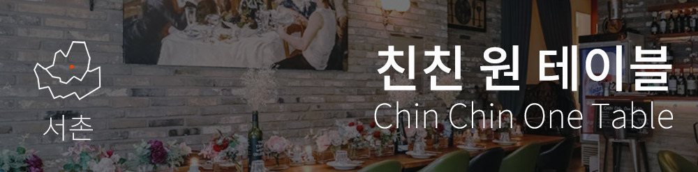시간이 느리게 흐르는 곳 서촌에 자리 잡은 소담한 레스토랑 친친 원 테이블. 규모는 작지만, 엄청나게 긴 테이블 위에는 탐스러운 생화가 장식되어있다. 매일매일 바뀌는 생화는 친친 원 테이블의 이재훈 셰프가 손님에게 건네는 인사이자 마음이다. 이재훈 셰프는 벌써 서촌에서만 4곳의 레스토랑을 운영하고 있는 서촌의 큰손이다. 친친 원 테이블의 소박하지만 아기자기한 소품으로 보는 것만으로도 미소가 절로 나오는 곳이다. 훌륭한 가격의 알찬 구성의 평일 런치 코스는 요즘 날씨처럼 가벼운 마음으로 즐기는 이탈리안 레스토랑다. 창이 크고, 생화가 올라간 긴 테이블에서 점심을 먹고 있으면, 꼭 흥겨운 피로연에 초대받은 것처럼 입과 가슴이 흥겹다.