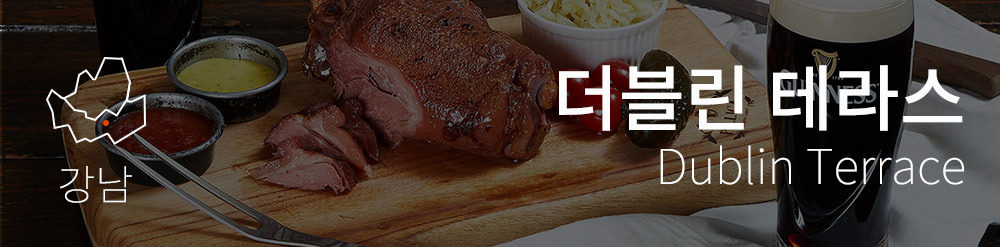 아일랜드와 우리나라는 참 많이 닮았다. 그것이 아픈 역사 때문인지, 아니면 유독 마시고 노는 걸 좋아하는 한과 흥의 민족이라서인지는 확신하지 못하겠다. 한 가지 분명한 건 이곳은 언제나 흥겹다는 거다. 가슴팍까지 오는 높은 바와 의자 어두컴컴한 실내. 나무와 술이 섞인 묘한 향기가 나기 시작하면 아, 내가 아이리시 펍에 왔구나 하고 알 수 있다. 아이리시 펍에서 선보이기엔 좀 생뚱맞은 메뉴긴 하지만, 독일의 족발인 학센은 더블린 테라스의 시그니처 메뉴다. 뭐, 국적이 어디면 어떤가. 어차피 다 유럽 문화권인데. 자정이면 비틀거리는 손으로 택시를 잡으려는 사람들로 붐비는 강남역, 더블린 테라스는 단 한 번의 실수도 없이 나를 취하게 한다.