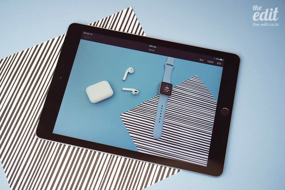 내 글만 읽으면 신형 아이패드가 뭔가 나사 빠진 저가형 모델 같겠지만, 실제로 조금만 써보면 그렇진 않다. A9 프로세서는 여전히 현역으로서의 자격이 충분하다. 특히 모바일 운영체제인 iOS에서는 손가락이 훨훨 날아다닐 성능이다. 여전히 말이다. 내가 자주 쓰는 ‘픽셀메이터’로 고용량 이미지를 불러와 편집해봐도 버벅임 없이 매끄럽다. 9.7인치 화면에서 멀티 터치로 이뤄지는 모든 작업은 언제나 그랬듯 가볍고 빠르다. 흠잡을 곳 없는 디스플레이다.