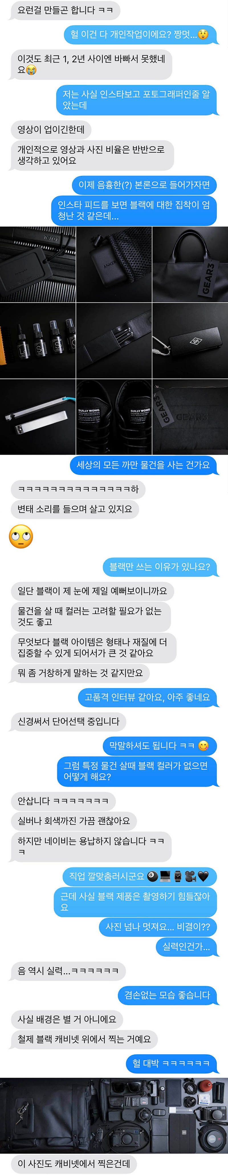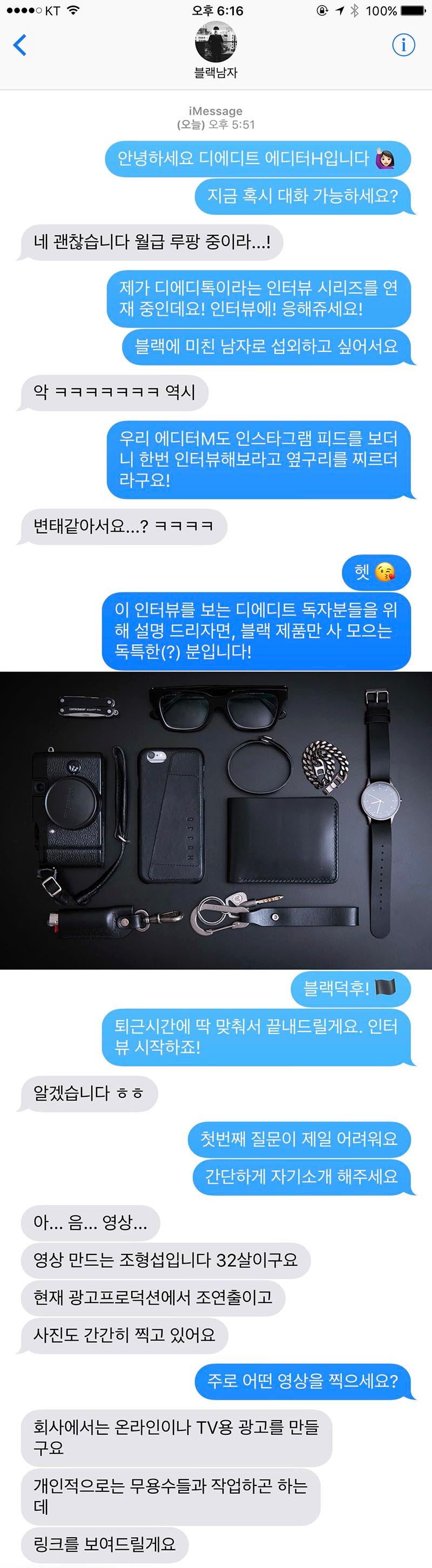 참고로 인터뷰는 소셜 미디어의 메신저로 진행된 후에 대화 일부를 그대로 옮겨서 아이메시지 형태로 편집했다.