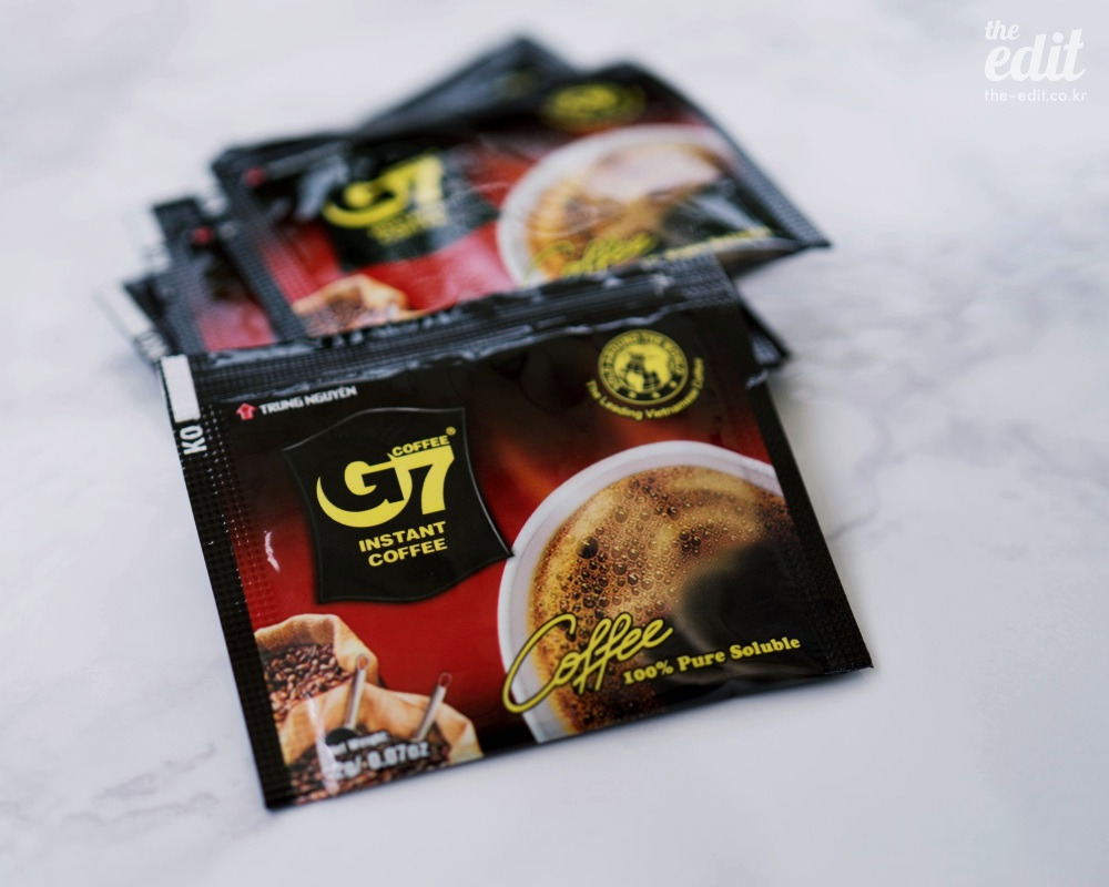 최근 에디터H와 내가 푹 빠져있는 커피가 있다. 볼품없는 이름과 패키지 때문에 쉽게 지나쳐버리는 그 이름. 베트남에서 온 인스턴트 커피 G7이다.