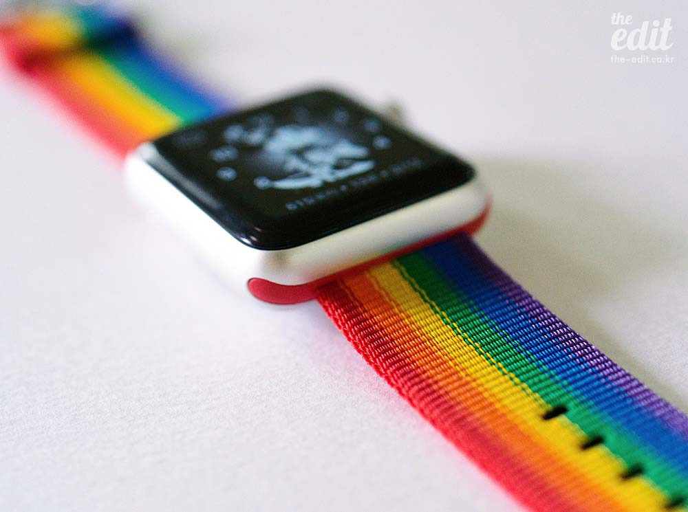 얼마 전, 미국으로 출장갔을 때의 일이다. WWDC 2017 키노트가 끝난 뒤, 핸즈온 섹션에서 새로운 아이패드 프로에 대한 이야기를 듣고 있었다. 아이패드 프로도 좋았지만, 내 시선을 사로잡은 건 좀 더 알록달록한 물건이었다. 몇몇 애플 스텝들의 손목에 감겨있는 무지갯빛 애플 워치 밴드에서 눈을 뗄 수 없었던 것이다.