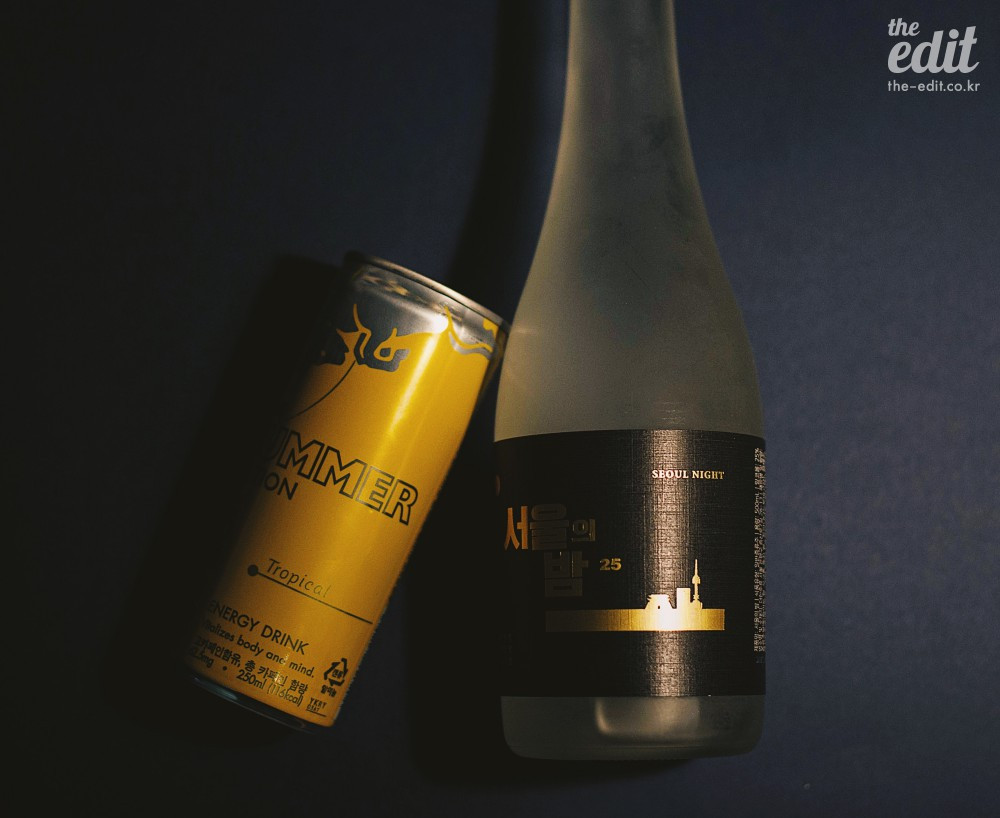 핫한 서울의 밤을 더 뜨겁게 즐길 수 있는 방법. 요즘 즐겨마시는 레드불 더 썸머 에디션을 넣은 ‘서울의 BOOMB’이다. 빠밤. 레드불을 넣은 폭탄주를 내 방구석에서 혼자 홀짝이려니 영 가오가 안 사는 건 함정.