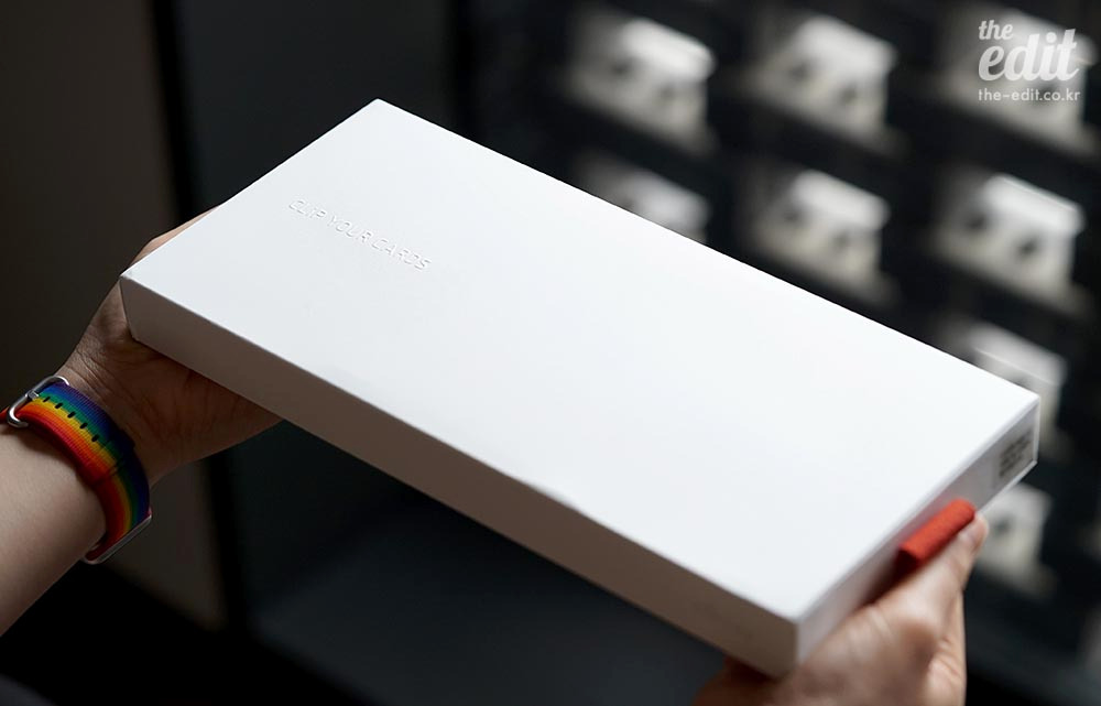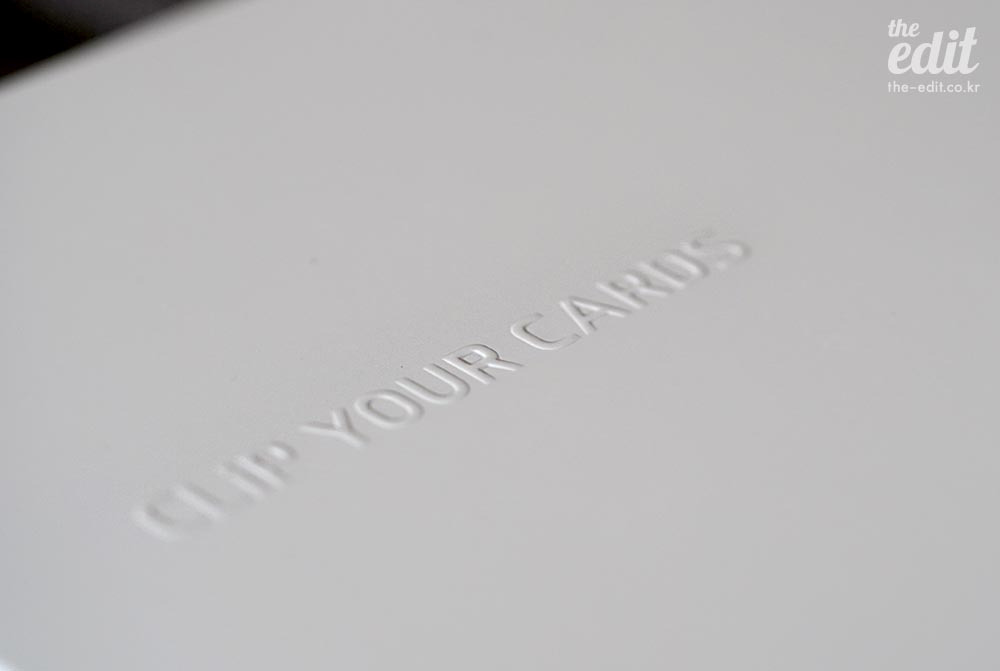 양각으로 새겨진 ‘CLIP YOUR CARDS’라는 문구를 손끝으로 만지다가 박스를 뜯었다.