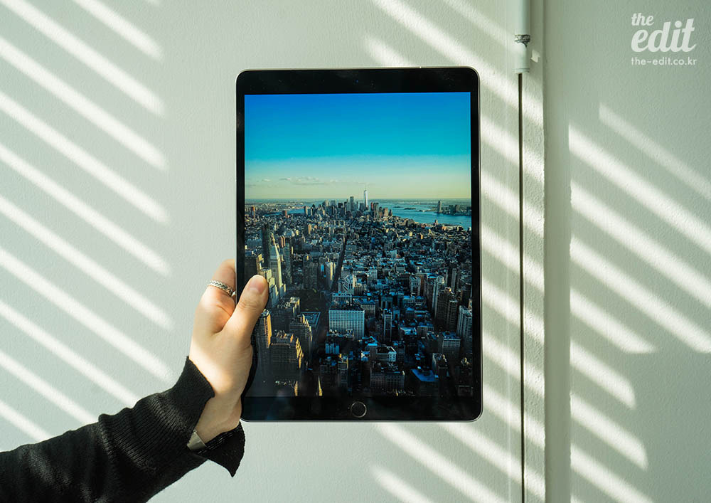 일단 크기. 10.5인치. 전작인 9.7인치와 비교했을 때 미묘한 차이다. 다들 처음에 보면 “베젤이 진짜 얇아졌다”고 감탄하던데, 난 솔직히 처음에 별 감흥 없었다. 뭐, 9.7인치나 10.5인치나 그놈이 그놈이지. 호들갑떨만한 차이는 아니잖아?