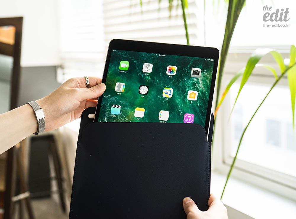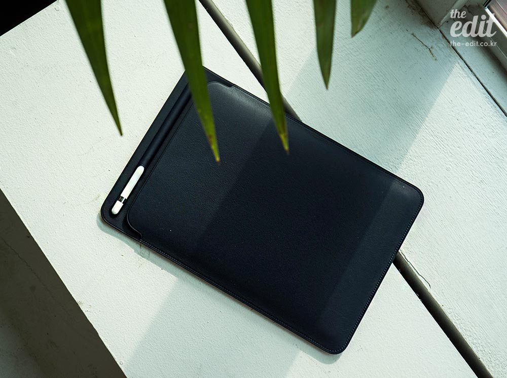 마지막 짤은 아이패드 프로보다 더 사치스러운 가죽 슬리브. 뭐랄까. 특별한 날을 위해 말쑥하게 차려입은 정장 같은 느낌. 손에 닿는 느낌부터 가죽 특유의 향기까지 너무 좋다. 스마트 키보드까지 결합한 상태에서 거치해도 (약간 끼지만) 들어간다. 가장 중요한 건 맨날 온 세상을 함부로 굴러다니던 애플펜슬에게 몸 둘 곳이 생겼다는 사실. 가죽 슬리브의 가격은 16만 9,000원, 스마트 키보드는 19만 9,000원. 아, 물론 비쌉니다. 네, 비싸요. 아시잖아요?