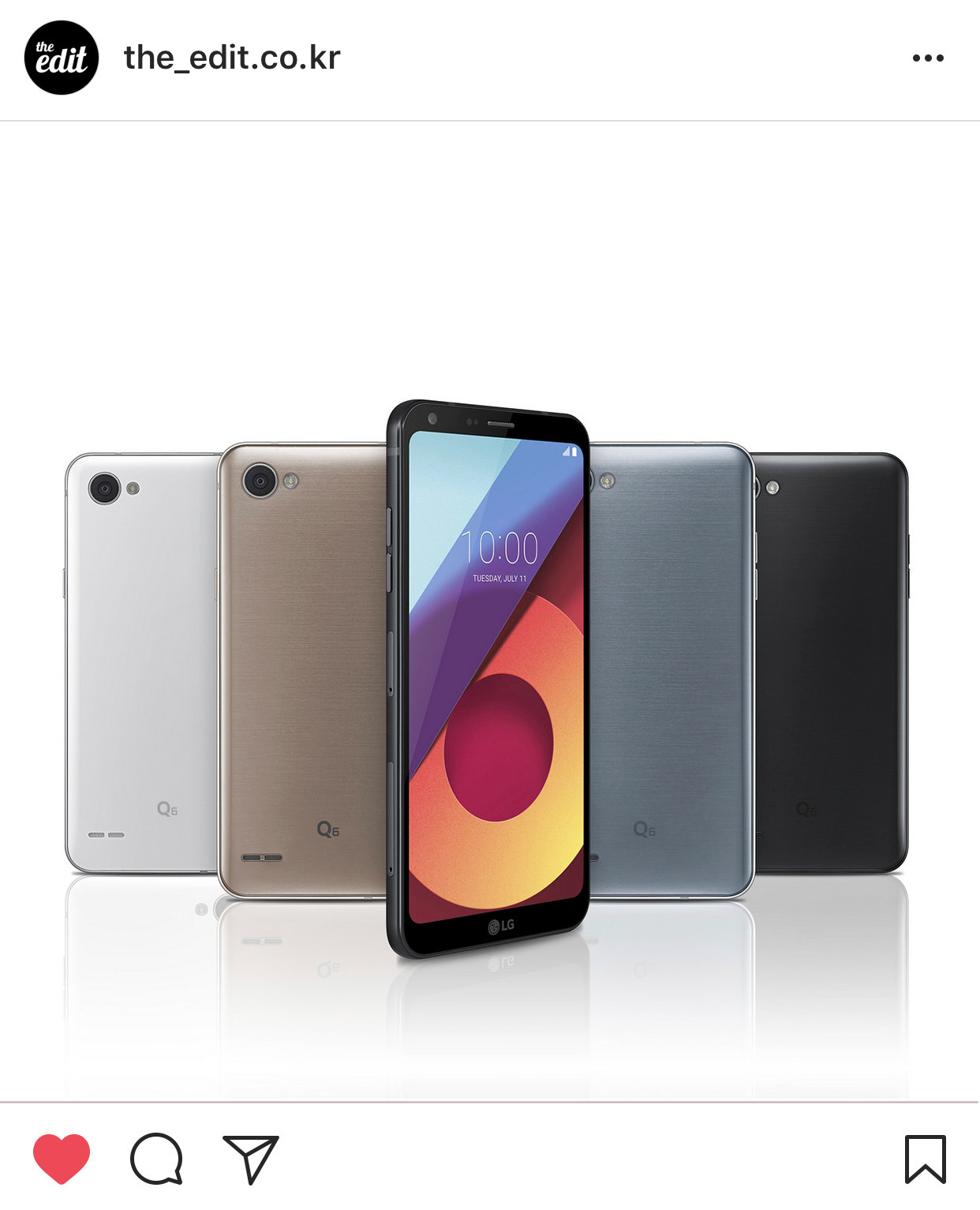 LG전자가 Q시리즈의 첫 모델인 LG Q6를 출시한다. 40만 원대의 보급형 라인업이다. 스마트폰처럼 생활 필수품에 해당하는 제품군의 가격대가 다양해지는 것은 언제나 반가운 소식. G6처럼 앞모습이 온통 다 디스플레이인 ‘풀비전 디스플레이’를 탑재했으며, 화면 크기는 5.5인치. 카메라 성능도 나쁘지 않다. G6에서 선보였던 스퀘어 카메라 기능도 적용된다. 길쭉한 18:9(그러니까 2:1) 비율의 화면을 이용해 화면을 반으로 나눠 한 쪽은 사진을 찍고, 한 쪽은 사진을 확인하는 기능이다. 전반적인 스펙은 G6보다 떨어지지만 가성비 면에서는 괜찮은 초이스일 듯. Q라는 이름이 좀 마음에 안 들지만 첫 제품을 환영하며 하트 ON.