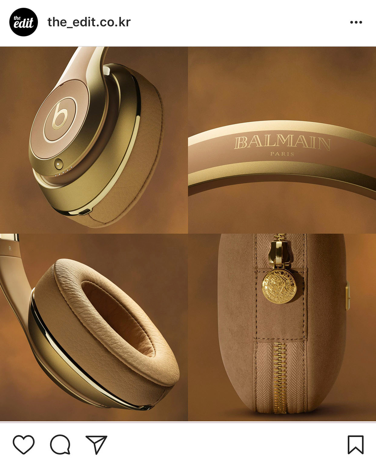 솔직히 말하면 난 골드보다는 실버 액세서리를 더즐겨한다. 웜톤인 나에게 골드는 어려운 색이다. 순금은 너무 누렇고, 그렇다고 14k는 좀 아쉬우니까. 그런데 말이지, 이번에 발망과 만난 비츠바이 닥터 드레 컬렉션은 솔직히 좀 탐난다. 중국인들이 좋아하는 금색 혹은 힙합가수들이 좋아하는 그런 골드가 아니라, 모래와 베이지 컬러에 조금 더 가까운 그런 골드랄까. 특히 스웨이드 재질의 케이스에 발망 특유의 금빛 코인지퍼 디테일이 살아있는 파우치는 넘나 탐나는 것. 콜라보 제품이니, 거기에 요즘 핫한 모델 카일리 제너까지 붙었으니 가격은 좀 더 올랐다. 스튜디오 와이어가 72만원, 파워비츠3 와어어리스가 29만 9,000원. 어차피 나는 어차피 못가질 테니 하트는 OFF.