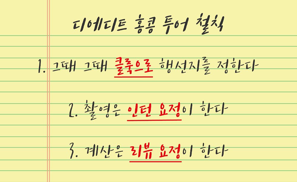 핑계는 완벽했다. 그렇게 우리는 떠났다. 3일 전에 예약한 항공권과 출발 전 날 예약한 숙소 외에는 정해진 게 아무것도 없었다. 두 명의 노쇠한 리뷰 요정과 두 명의 활기 넘치는 인턴 요정이 함께 한 디에디트의 홍콩 투어를 공개한다. 일정 내내 몸집 만한 카메라로 열심히 사진을 찍어준 J에게 감사를.
