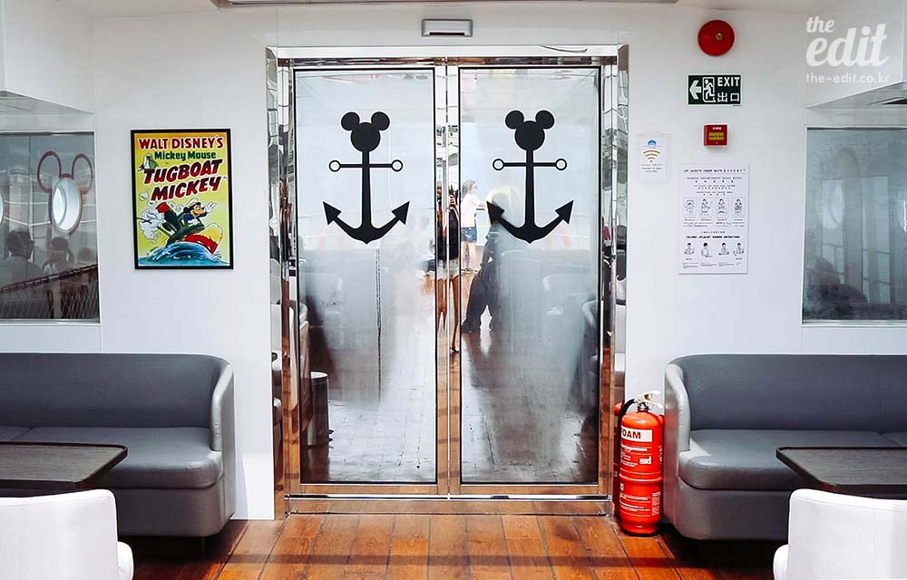 홍콩 디즈니랜드는 도심에서 꽤 멀다. 스타 페리를 타고 바다 바람을 맞으며 가기로 했다. 침사추이 지역에서 출발하는 첫 페리는 11시. 아슬아슬하게 시간 맞춰 페리에 올랐다. 디즈니랜드 행이라 그런지 스타 페리 내부의 인테리어 곳곳에 미키마우스가 숨어있다. 친절하고 깔끔한 페리였다. 티켓을 사면 과자와 음료수도 제공한다. 그런데 불길했다. 중간쯤 왔을 때부터 장대비가 쏟아지기 시작했다. 페리가 요동쳤다. 우리는 모두 배멀미에 시달렸다. 체질적으로 뱃멀미를 하지 않는다는 에디터M만 빼고…