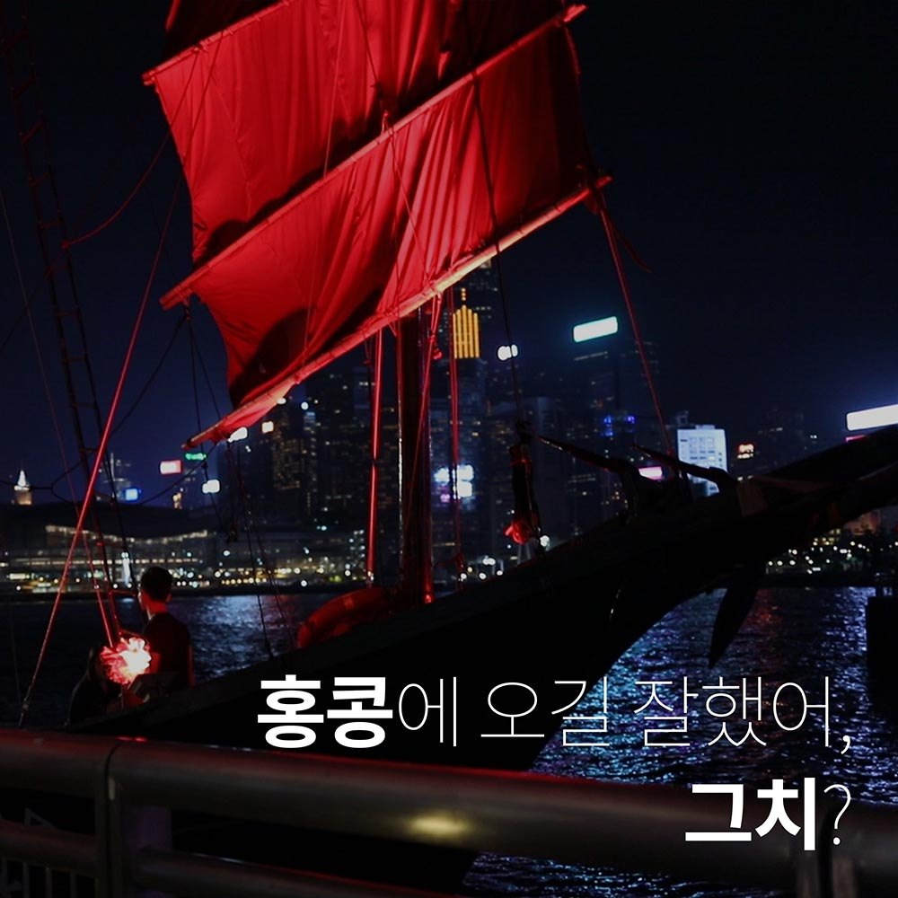 빨간 범선이 세차게 출발한다. 바람이 불어오기 시작했다. 낮에 탔던 스타 페리처럼 요동치지 않아서 멀미도 없었다. 자리에 앉으니 직원이 다가와 어떤 음료를 마실지 묻는다. 기껏해야 콜라나 한 잔 주려나 싶었는데 와인이나 맥주도 있다고. 크루즈에서 와인이라니! 너무 신난다. 화이트 와인을 마시며 홍콩의 야경을 즐기기 시작했다.