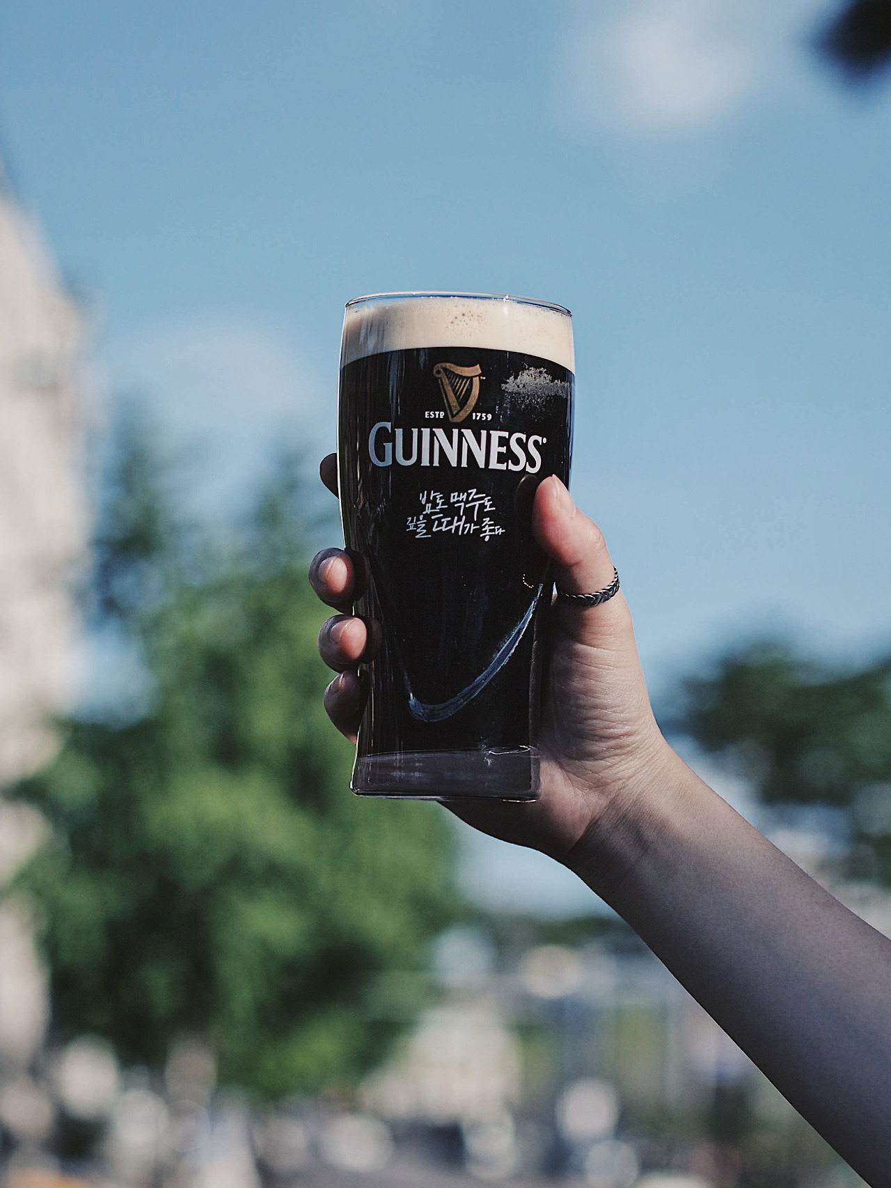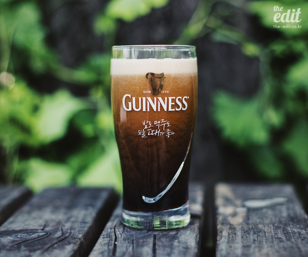전용잔이 좋은 이유는 퍼펙트 파인트를 완벽하게 완성하기 위한 일종의 가이드 라인이 되어준다는 거다. 잔의 하프 로고까지 기네스를 따른 후, 잠시 휘몰아치는 서징을 즐겨본다.
