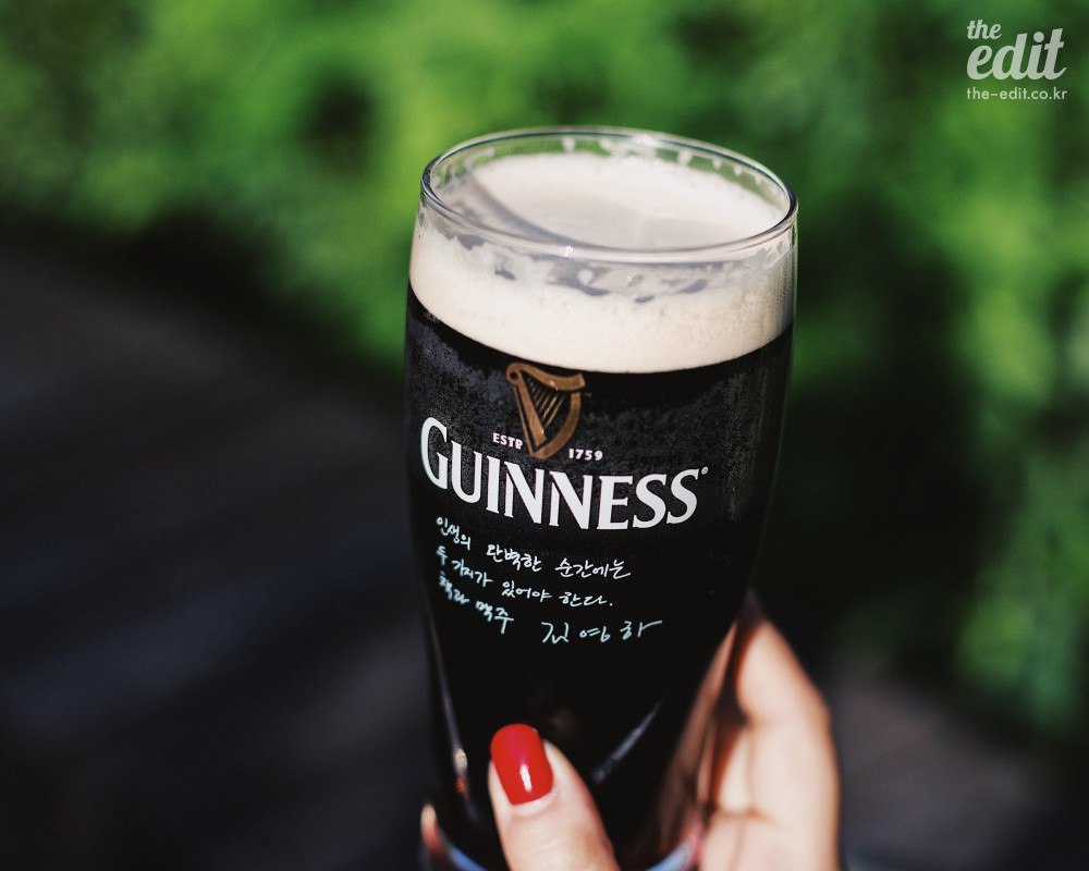 오늘 맥주 리뷰를 가장한, 나의 이야기는 여기까지. 김영하와 책, 그리고 나의 로망까지 주절주절 많이도 떠들었다. 행복하다. 왜냐면 내 로망을 이루었으니까. 이 근사하고 특별한 잔이 나에게 알려준 건, 일상의 사소하지만 반짝이는 경험들이 모여 나를 조금씩 더 행복하게 만들어 준다는 것. 김영하 작가의 특별한 문구가 더해진 기네스 전용잔은 9월부터 대형마트에서 기네스 패키지와 함께 판매될 예정이라고 한다. 디에디트 독자 여러분들 모두가 기네스의 맛을 더 특별하게 만들어 줄이 반짝이는 감성을 꽉 붙들길 바란다.