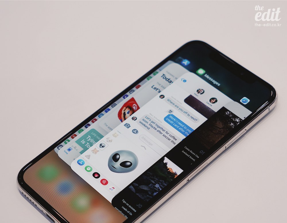 아, 맞다. 제일 중요한 얘기가 뒤로 밀렸군요. 아이폰X에는 아이폰의 상징과도 같은 홈버튼이 없습니다. 멘붕이 오죠. 홈버튼이 없으면 아이폰을 어떻게 깨워야 할까요. 어떻게 홈화면으로 가나요. 어떻게 멀티 태스킹을 하나요. 애플은 제법 영리한 수를 냈습니다. 10년을 적응해온 사용자 환경을 뒤집어 엎는 만큼 가장 단순한 경로를 마련한거죠.
