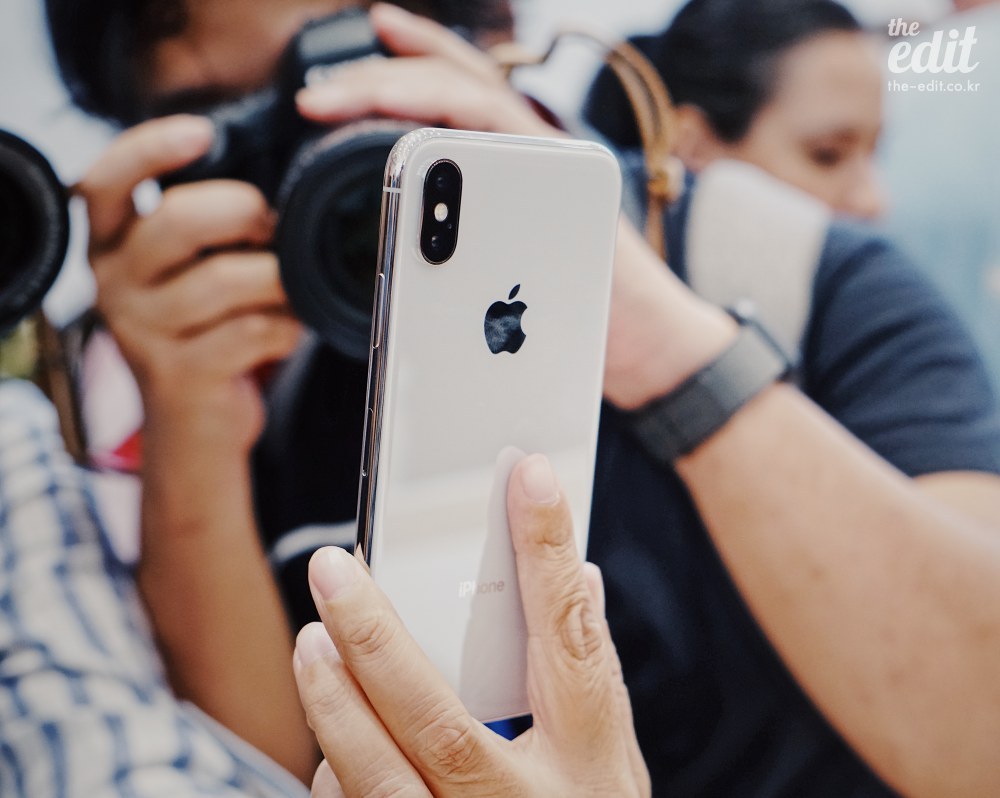 옥에 티처럼 새까맣게 자리한 상단 ‘블랙 바’ 때문에 디자인이 완전 망해버렸냐고 물으신다면, 그렇진 않습니다. 실물을 봤을 때 아이폰8 쪽이 훨씬 예쁘다는 느낌을 받긴 했습니다. 아이폰8같은 경우엔 익숙한 디자인에서 예쁘지 않은 요소는 빼고, 더 뽀샤시하고 매끈하게 다듬었으니까요.