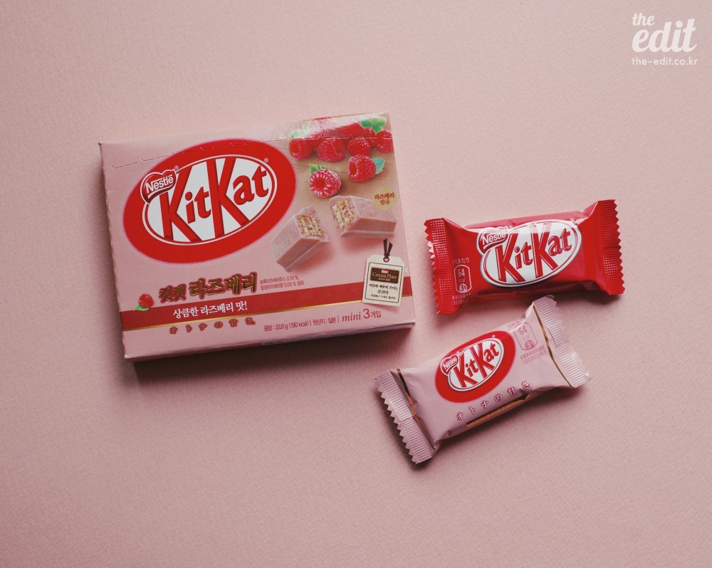 핑크를 좋아하는 에디터H는 말한다. 핑크라고 다 똑같은 핑크가 아니라고. 동의한다. 특히 킷캣 라즈베리는 쉽게 만나볼 수 없는 분홍빛을 띤다. 촌스럽지 않고 여리여리 청순한 분홍빛. 인디핑크와 딸기우유 그 중간 동네 어디쯤의 오묘한 색이다.