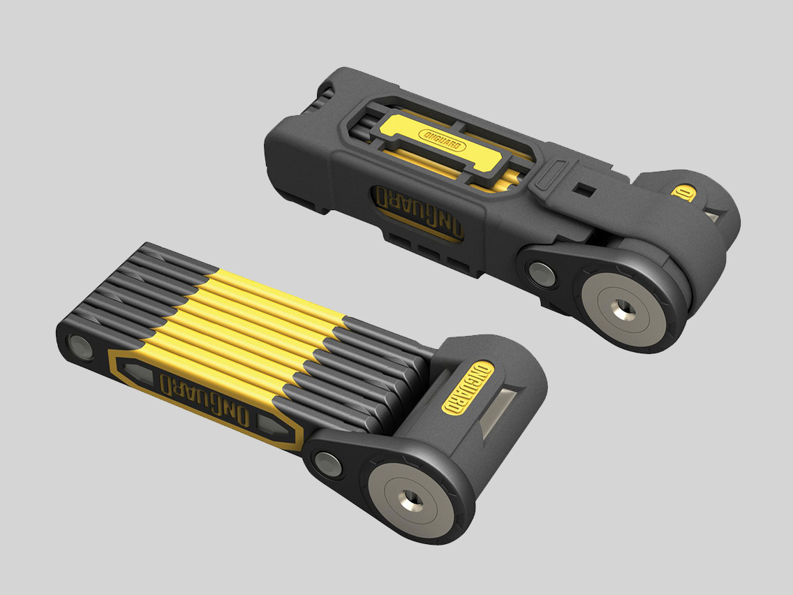 굉장히 듬직한 ONGUARD 6관절 락. 이름처럼 정직하게 관절이 6개. 무겁지만 그만큼 튼튼하고 자전거에 장착할 수 있어 편하게 이용 가능하다. 늘 자전거를 잃어버릴까봐 노심초사하는 라이더에게 드리면 물개박수를 받을 수 있을 것!