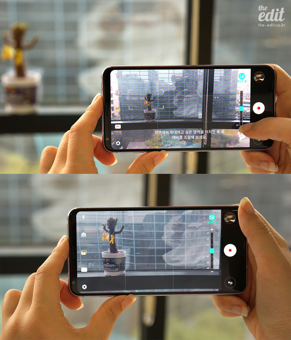 자, 카메라 환경의 변화에 대해 말해보자. 일단은 사진부터. LG전자의 듀얼 카메라는 계속해서 표준 화각과 초광각 카메라의 포지션을 유지하고 있다. 삼성이나 애플의 듀얼 카메라와는 다른 전략인데, 나는 양쪽 다 흥미롭다고 본다. 어쨌든 스마트폰 카메라가 가진 한계를 두 개의 렌즈로 극복하자는 의도니까. 렌즈 교체가 불가능한 폰카메라 환경에서 두 개의 화각을 터치 한 번으로 오갈 수 있다는 건 매력적인 요소다. 여행지에서 풍경 사진이나 단체 사진을 담을 때, 광각 카메라를 한 번 써보면 “아, 쩌는구나”하고 바로 납득하게 될 것.
