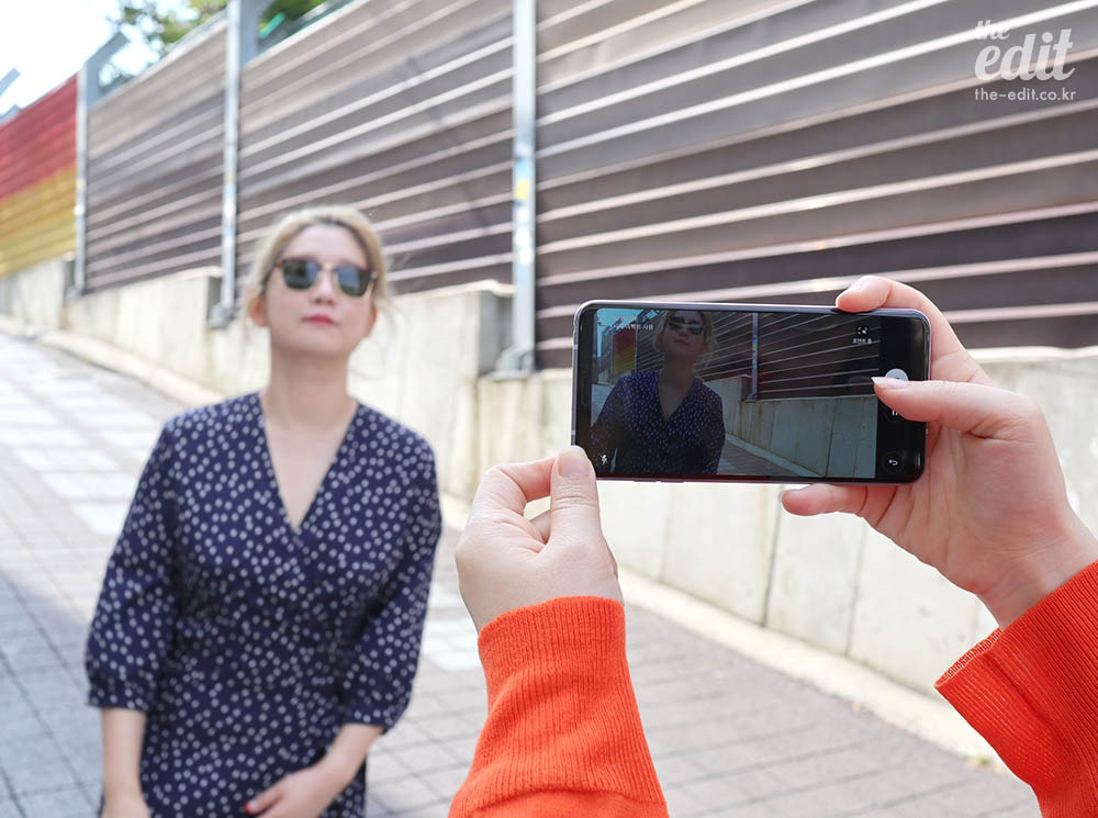 우리가 영상을 찍던 날은 하늘이 새파랗고 예뻤다. 날씨 좋은 낮 시간에 야외에서 촬영할 땐 무조건 ‘풍경 필터’를 써보시길. 하늘이 더 새파랗게 표현돼서 드라마틱한 그림을 담을 수 있다.