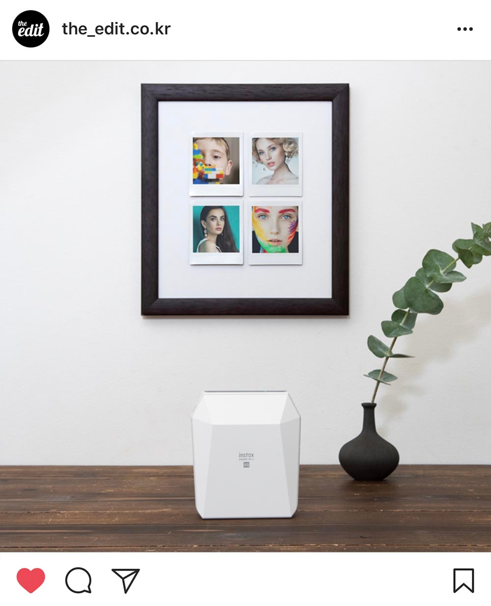 이젠 뭐든 정방형이 더 멋스러워 보인다. 인스타그램에 중독된 탓일까? 사진을 찍는 비율이 달라지고 있으니, 사진을 뽑는 비율도 달라져야겠지. 인스탁스 쉐어 시리즈의 재밌는 변종(?)이 등장했다. 쉐어 SP-3는 기존에 쓰던 신용카드 사이즈의 미니 필름 대신 정사각형의 ‘스퀘어 필름’으로 사진 사이즈를 키웠다. 완충 시 100장을 뽑을 수 있었던 배터리는 160장으로 체력을 길렀다. 한 장을 프린트하는데 걸리는 시간은 고작 13초. 스마트폰에 저장된 이미지 뿐만 아니라 인스타그램이나 페이스북에 저장된 사진을 바로 연결해 인화할 수도 있다. 하트 ON.