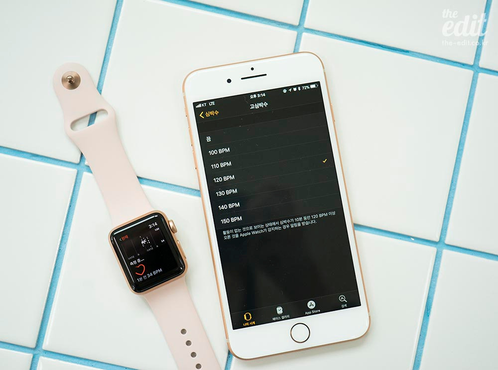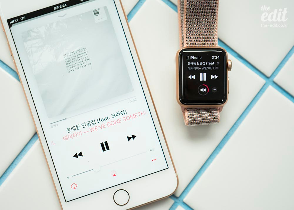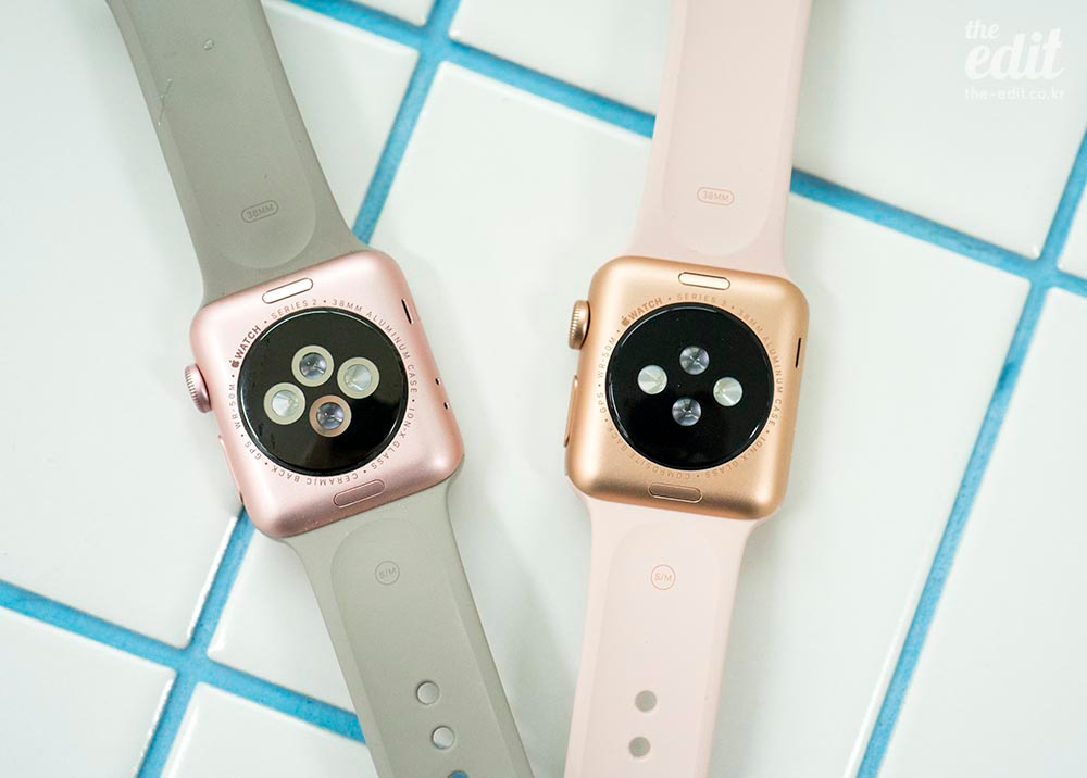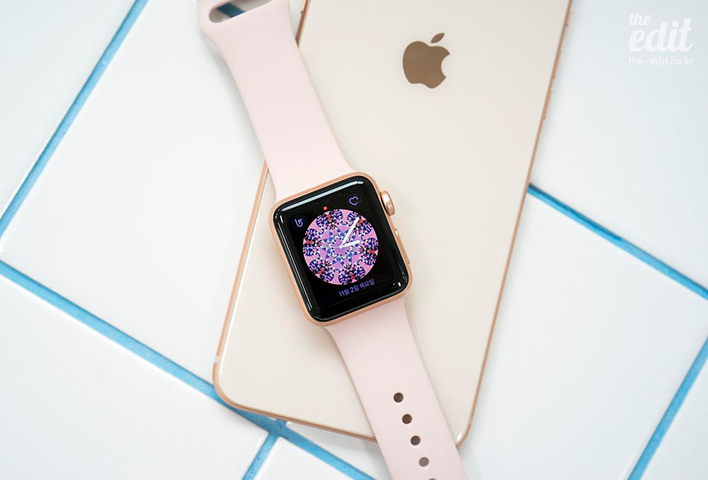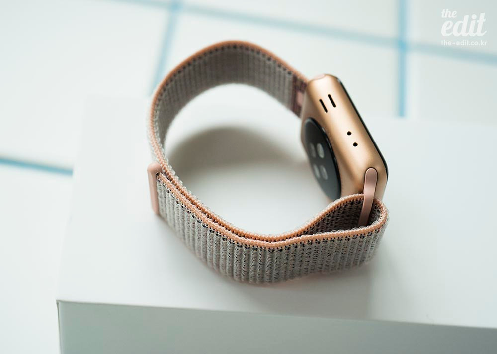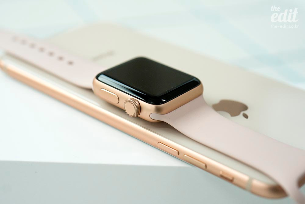 오늘은 나답지 않게 디자인 얘기를 가장 마지막에 하게 되는 것 같다. 얘는 애플워치 시리즈3의 골드 알루미늄 케이스. 핑크빛이지만 에디터M이 현재 사용 중인 시리즈2 로즈 골드 케이스와 비교해보면 상당히 다른 빛깔이다.