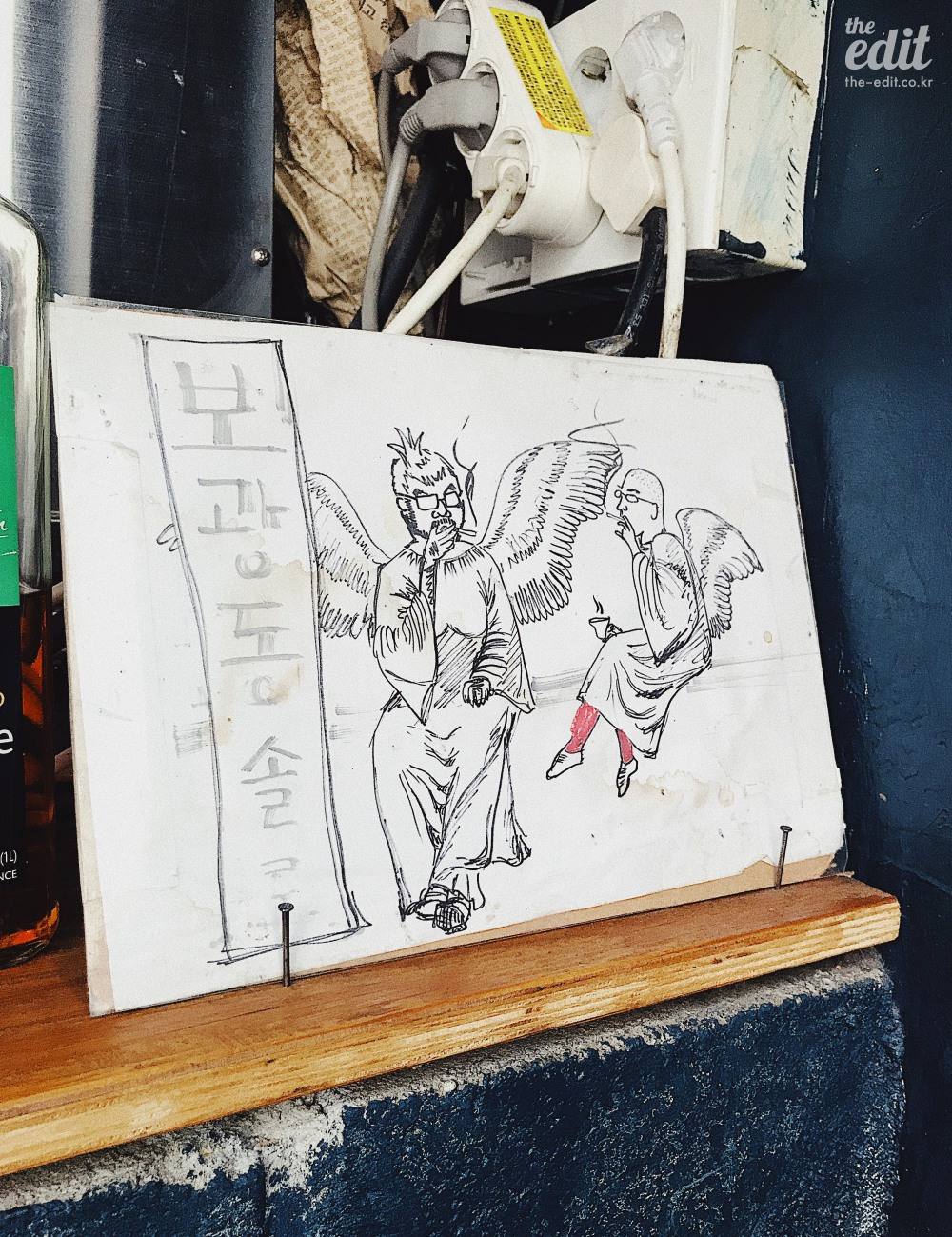 사람 키와 맞먹는 두 개의 스피커에서는 클래식, 재즈, 언니네 이발관, 신해철까지 대중 없이 좋은 음악이 쉬지 않고 흘러나온다. 작게 웅성이는 사람들의 수다소리와 규칙적으로 들리는 커피 머신 소리가 양념이 되어 공간을 가득 채운다. 언제나 노트북을 챙겨가지만, 커피향과 맛에 취해 커피만 홀짝이다 돌아오곤 한다.