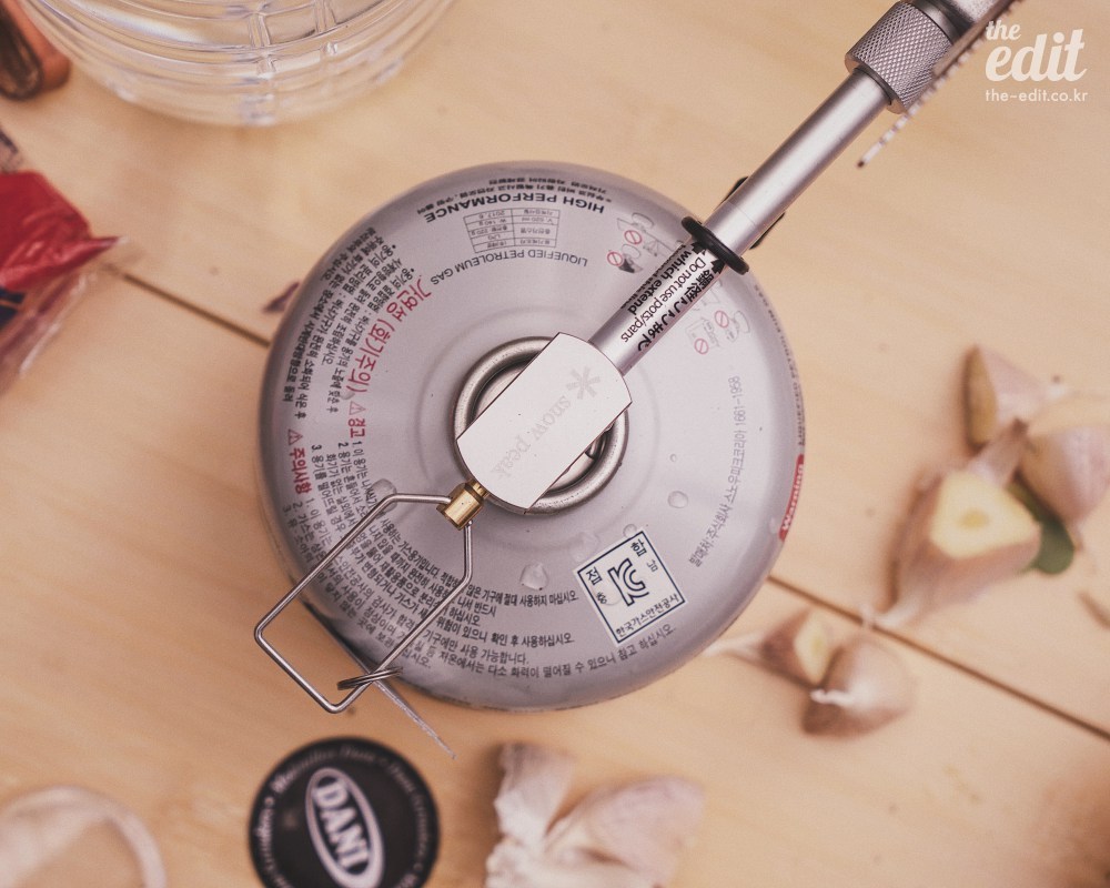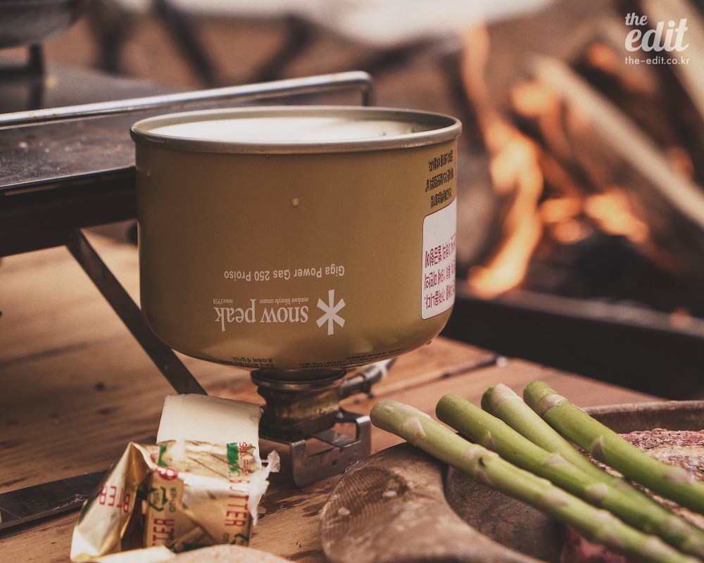 버너에 사용한 가스도 스노우 피크 제품. 솔직히 마트에서 사면 반 가격 정도에 구입할 수도 있지만, 이렇게 가스까지 맞추면 멋지잖아? 스노우피크는 심지어 가스도 시크하다.