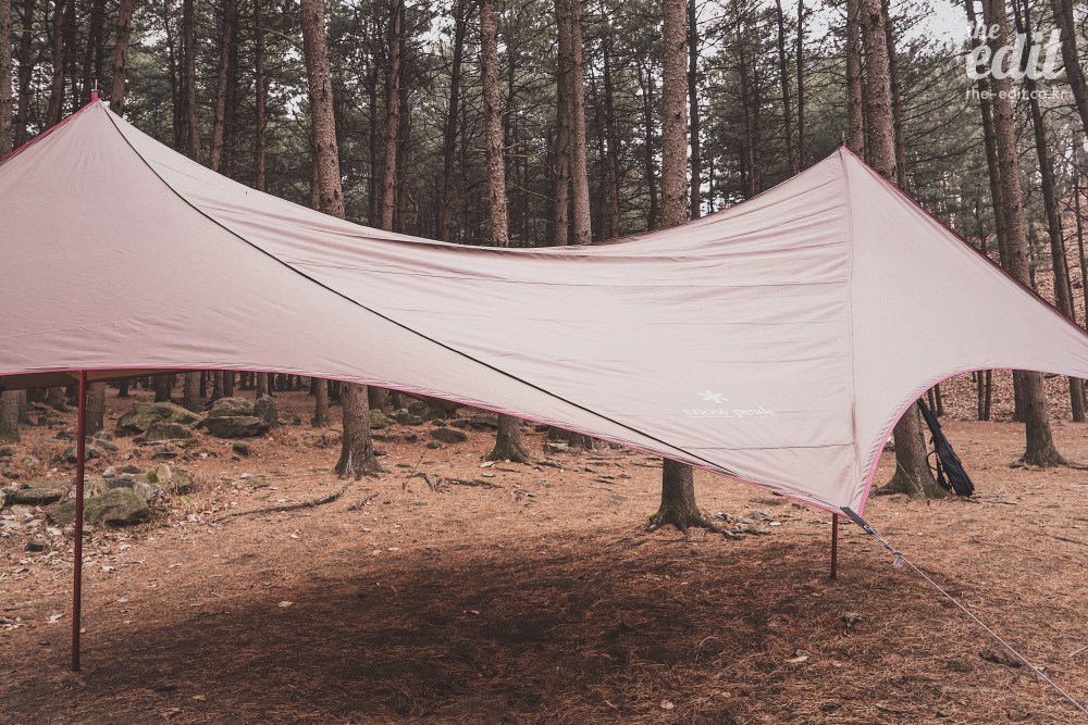 물론 사각형의 렉타 타프가 더 실용적이긴 하지만, 6개의 팔을 쫙 벌린 헥사가 더 간지다. 하늘 높은 줄 모르고 뻗은 잣나무 아래서 우리의 타프가 그리는 우아한 곡선.