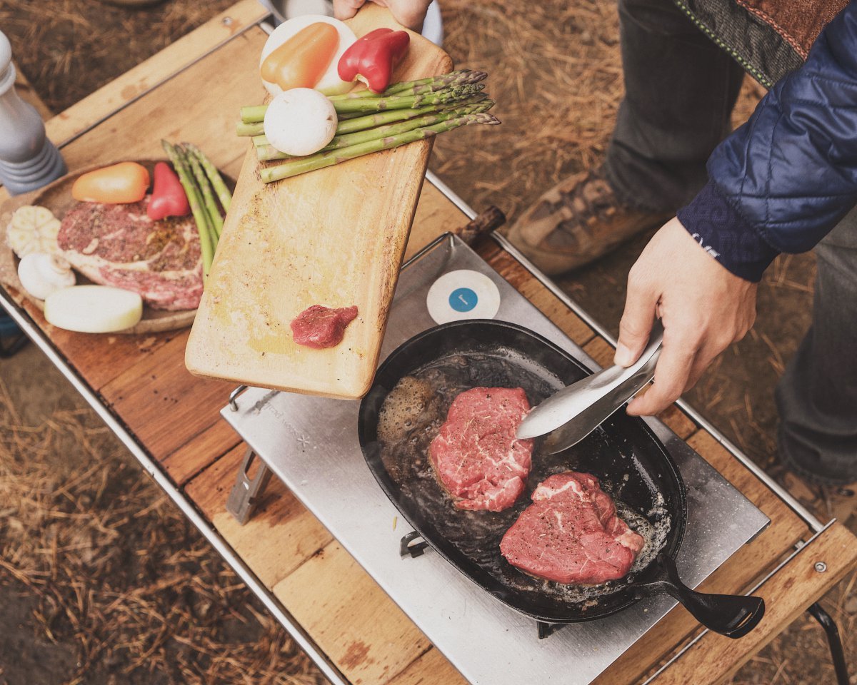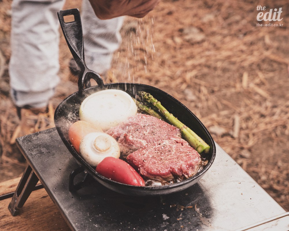 이제부턴 본격적인 먹방이다. 에디터H가 소리친다. “캠핑은 먹으러 오는 거야. 여기선 먹는 거 말고는 딱히 할일이 없거든.” 그말이 사실이었다. 스파게티를 시작으로 두 번의 스테이크, 카프레제, 카나페, 마무리 라면까지. 정말 야무지게 먹고 또 먹다가 돌아왔다. 그중에 하이라이트는 당연 스테이크.