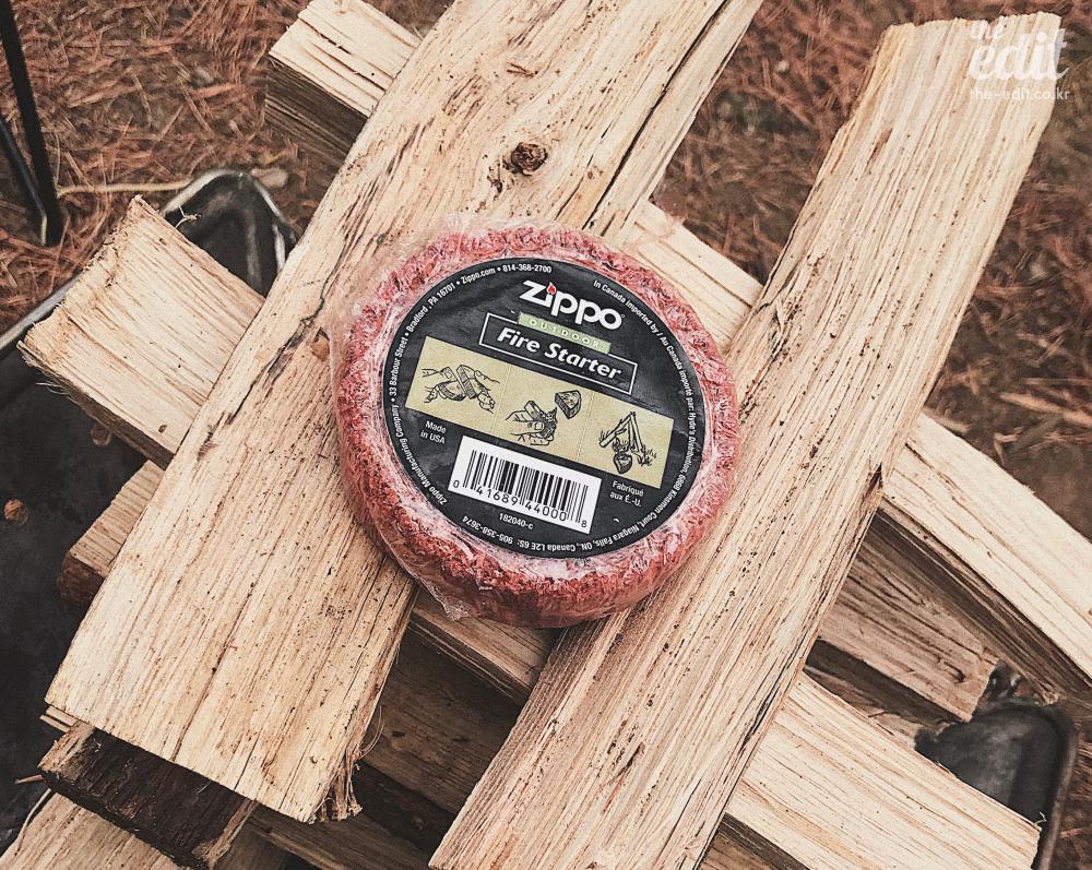 불씨를 키우는데 최고! 지포 파이어 스타터. 삼나무를 혼합한 톱밥을 압축해 만든 동그란 스타터로 젖은 장작도 타오르게 한다는 물건 중의 물건! 빠밤.