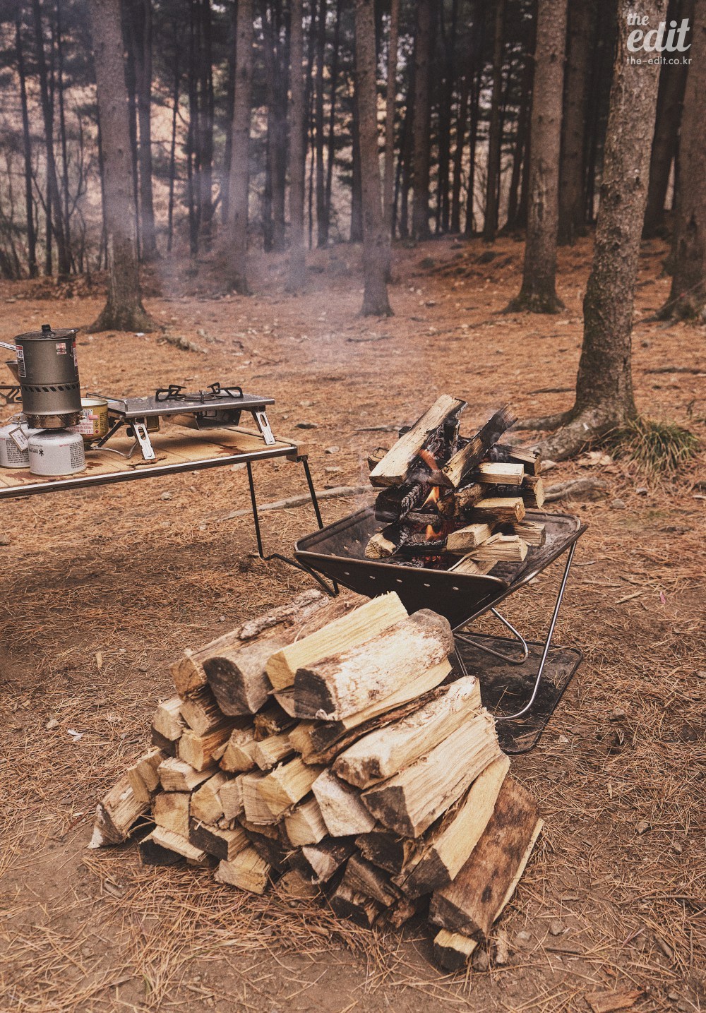 타프를 치고 적당한 거리를 둔 후 장작을 피운다. 난생처음 ‘불멍’이란 단어도 배웠다. 화로대에 장작을 넣고 불을 보며 멍 때리는 걸 말한다. 장렬하게 자신의 몸을 불살르고 공중으로 흩어지는 불씨는 봐도봐도 질리지 않는다.