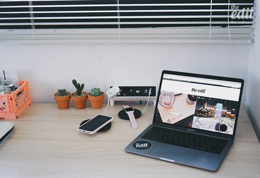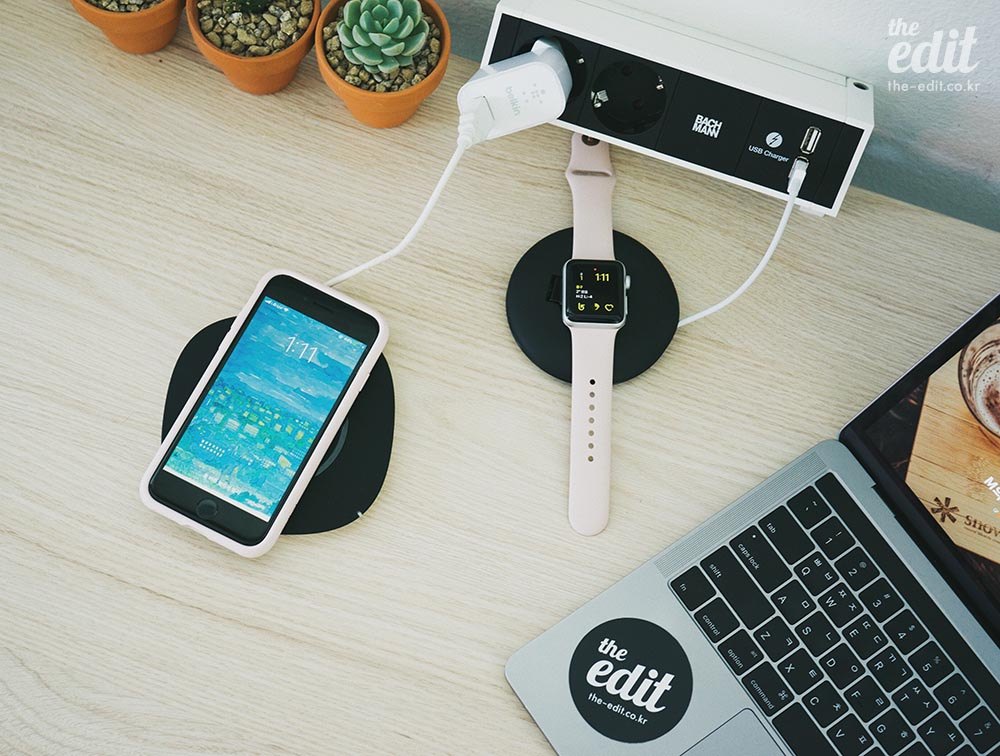 이 제품은 막내 에디터 자리에 설치해두었다. 얼마 전에 아이폰5s에서 아이폰8으로 점프한 그녀에게 무선 충전의 신세계까지 보여주고 싶었다.