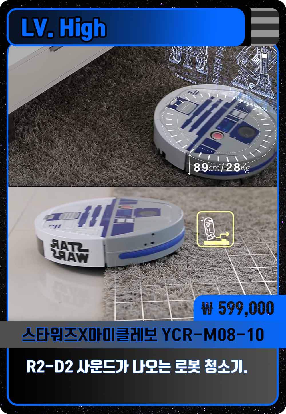 R2-D2의 사운드를 내며 청소를 해주는 아이템. 극중 R2-D2의 많은 활약 중에 청소하기는 없었지만, 내 집을 돌며 깨끗하게 치워준다면 행복하겠지. 고가지만, R2-D2를 사랑하는 자라면 살 수 있다. R2-D2니까.