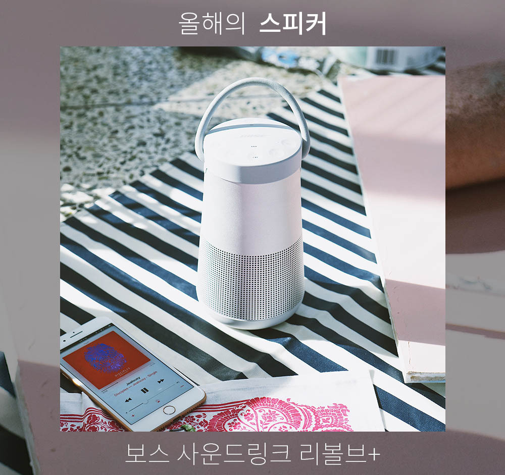 보스 사운드링크 리볼브 플러스. 올해 두 번이나 리뷰했던 제품이다. 첫 만남은 디에디트의 1주년 파티에서였다. 루프탑 파티에서 음악을 틀만한 세련된 블루투스 스피커를 찾다 발견했었지. 사무실에서 테스트 삼아 처음 틀어보고 에디터M과 동시에 “대박…”을 외쳤던 기억이 난다. 둘다 오디오 분야에서 잘난척할 만큼 내공이 있는 편도 아니었지만, 좋은 건 금세 알 수 있었다. 파워풀하지만 해상력 또한 뛰어났다. 장르를 가리지도 않고, 장소를 가리지도 않는다. 파티에 모인 수십 명의 사람들이 모두 좋은 소리를 들을 수 있는 360도 사운드도 감동적이었다. 그 뒤로 블루투스 스피커를 고민하는 사람을 만날 때마다 줄기차게 영업하고 다녔다. 47만 원대로 가격이 높은 편이긴 하지만 돈값 하는 녀석이다. 여유가 된다면 두 대를 구입해서 스테레오 모드로 연결했을 때의 짜릿함도 즐겨보시길. 에디터H가 망설임 없이 선택한 올해의 스피커.