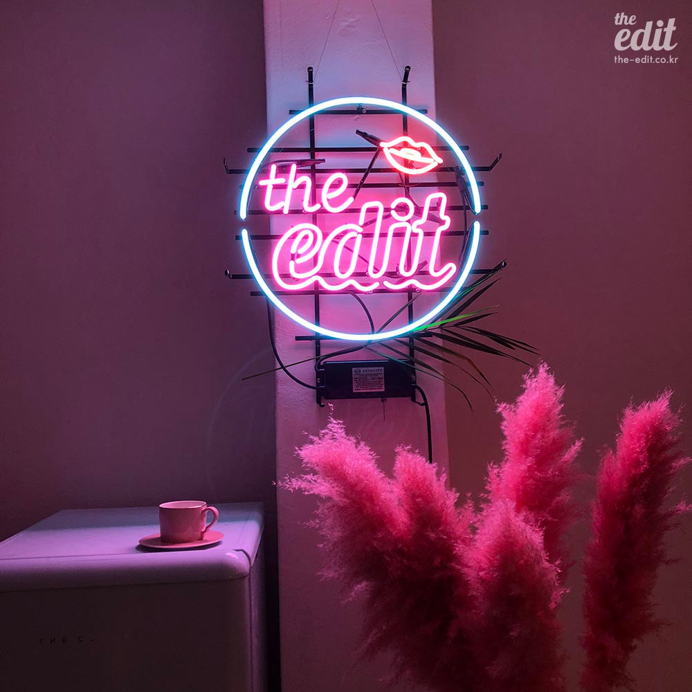 M: 난 저 네온사인이 마음에 들어. 작년 디에디트 1주년 파티 때 쓰려고 을지로에서 진짜 큰맘 먹고 30만원이 넘는 돈을 주고 맞춘 건데. 디자인과 컬러도 엄청 심사숙고해서 골랐다고. 사무실을 구하고 나서 벽에 걸어두니 넘나 힙한 것. 저 네온사인 빛이 생각보다 세서, 저녁에 틀어두면 핑크빛이 사무실을 지배하더라고. 덕분에 저녁마다 술집에서 일하는 기분을 느낄 수 있…