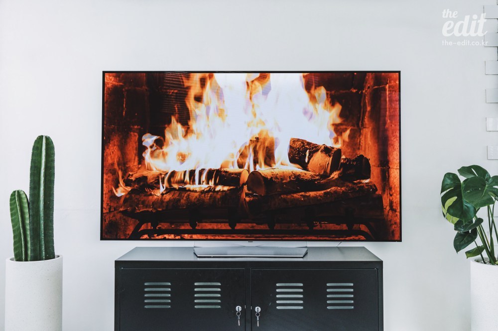 마지막은 디에디트의 마음도 훈훈하게 해준 올레드 벽난로로 장식하련다. 이 TV의 매력을 백분 발휘할 수 있는 영상이 바로 벽난로 영상이었다. 저래봬도 넷플릭스에 등록된 4K UHD 콘텐츠로 무려 60분의 러닝타임을 자랑한다. 처음부터 끝까지 벽난로의 장작이 타들어가는 장면 뿐인데 이걸 재생해놓으면 완벽한 벽난로 인테리어 소품이 된다. 까만 화면에서 붉게 타오르는 불꽃이 올레드 TV가 가진 장점을 조화롭게 보여준다. 아름답지 않은가. 아, 좋은 기기를 리뷰한다는 건 언제나 곤란한 일이다. 연초부터 욕망이 불타오른다.