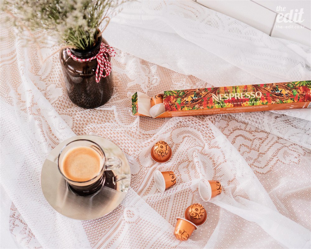 에티오피아와 우간다는 말이죠 아프리카 커피 생산지의 두 개의 큰 기둥이에요. 그리고 이곳에서 생산된 아라비카와 로부스타 커피는 전 세계 수많은 커피 품종 중에서 가장 유명한 커피라고 볼 수 있어요. 우리가 많이 들어본 아라비카 커피가 탄생한 곳이 바로 에티오피아, 로부스타는 우간다에서 시작된 커피랍니다. 그러니까 이번 리미티드 에디션은 전 세계를 돌아다니며 가장 맛있고, 이야기가 있는 커피를 발굴하는 네스프레소가 찾아낸 또 하나의 보석인 셈이죠.