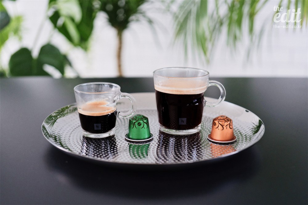 이름을 말하는 게 좀 늦었죠? 새해 처음으로 선보이는 네스프레소의 신상, 아라비카 에티오피아 하라와 로부스타 우간다입니다. 위 이미지 속 살짝 보이는 스틸 트레이는 아프리카 전통 커피 세레모니에서 영감을 받아 스위스 스튜디오 아뜰리에 오이와 제작했대요. 여기에 커피를 담으면, 반짝거리며 잔을 비추는것이 얼마나 근사한지 몰라요. 이번 출시를 기념한 특별 기프트 박스에 이 스틸 트레이와 뷰 룽고 혹은 뷰 에스프레소 2개가 함께 포함되어 있대요.