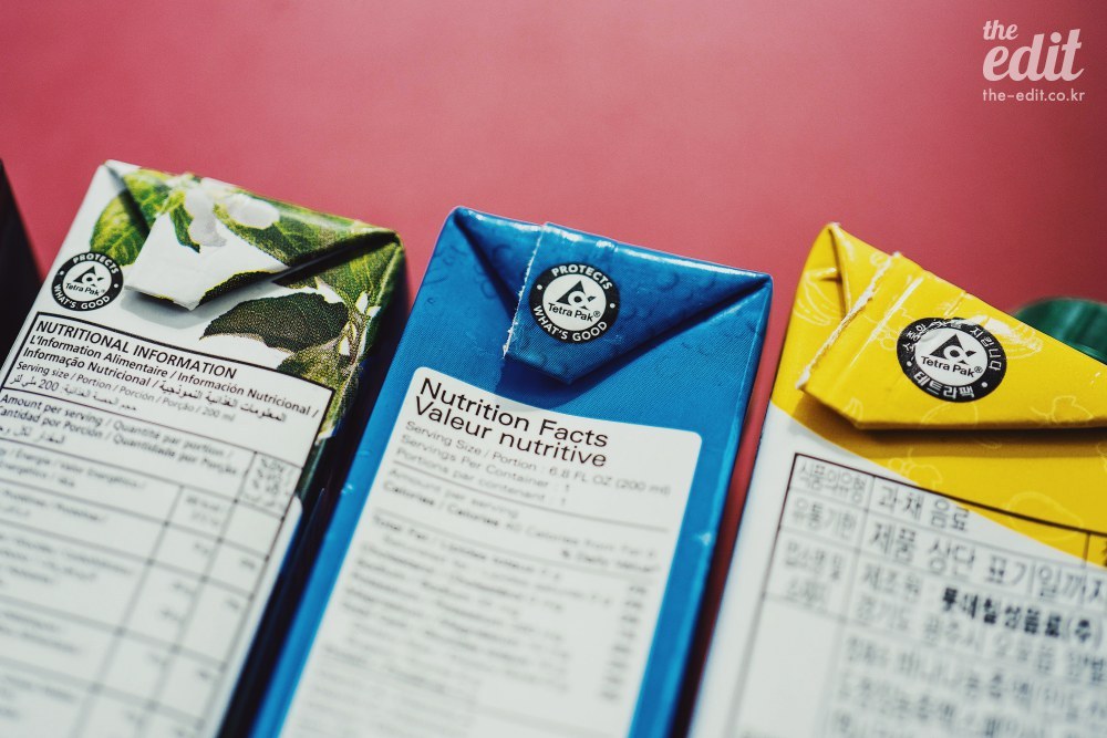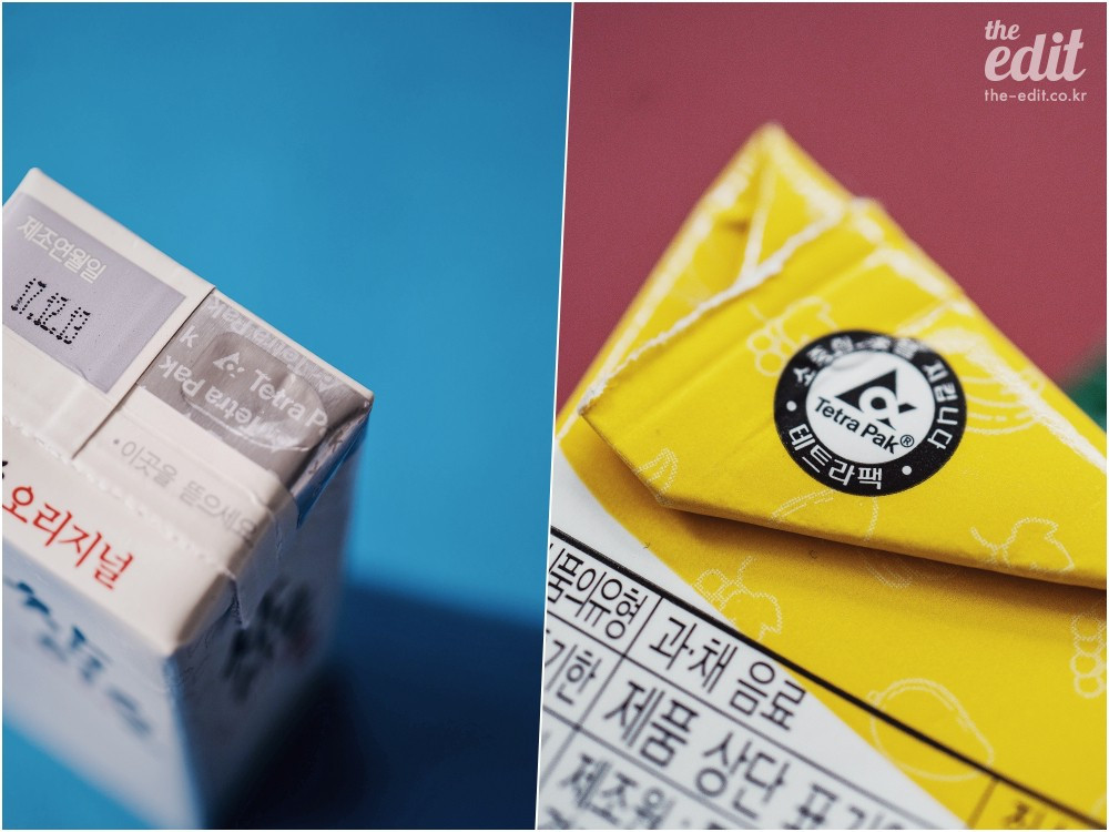 자, 옛날이야기는 이쯤 하기로 하고 현실로 눈을 돌려보자. 한 남자의 집념으로 시작한 테트라팩은 지금 이렇게나 다양한 모습을 하고 우리 삶과 맞닿아 있다. 편의점이나 마트에 들러 아무 종이팩이나 들고 옆 혹은 아래를 확인해보자. 아마 거의 모든 종이팩에서 테트라팩 로고를 확인할 수 있을 거다.