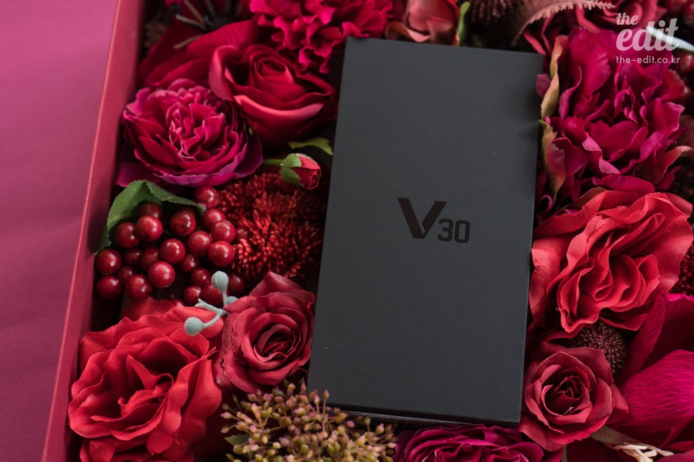 리뷰 제품을 받아본 패키지가 상당히 매혹적이었다. 박스를 여니 빼곡한 꽃잎 사이에 V30가 곱게 누워있다. 반지나 목걸이가 들어있어도 이상하지 않을 로맨틱한 패키지다. 다가온 발렌타인 데이를 위한 준비일까? 아쉽게도 일반 판매용은 아니고 이벤트 패키지라더라. 그래도 뜯어보는 내 입장에선 눈요기는 톡톡히 한 셈이다. 혹시나 이 제품을 선물용으로 구입한 분들은 이 패키지에서 힌트를 얻어 꽃집에 포장을 맡겨보자.