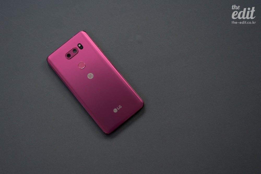 실제로 V30 라즈베리 로즈 컬러의 표면에서는 차가운 보랏빛이 묻어난다. 레드의 느낌과 블루의 느낌을 모두 품고 있다고 보는 게 옳겠다. 보랏빛 광택 덕분에 시크한 느낌이 있어 남자가 쓰기에도 착 붙는 컬러다.