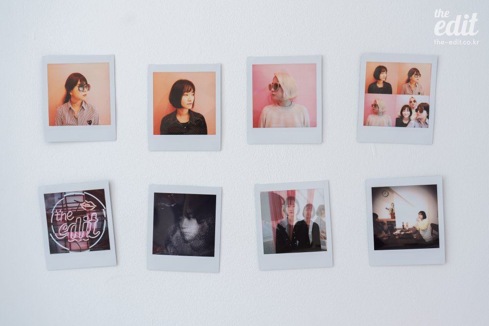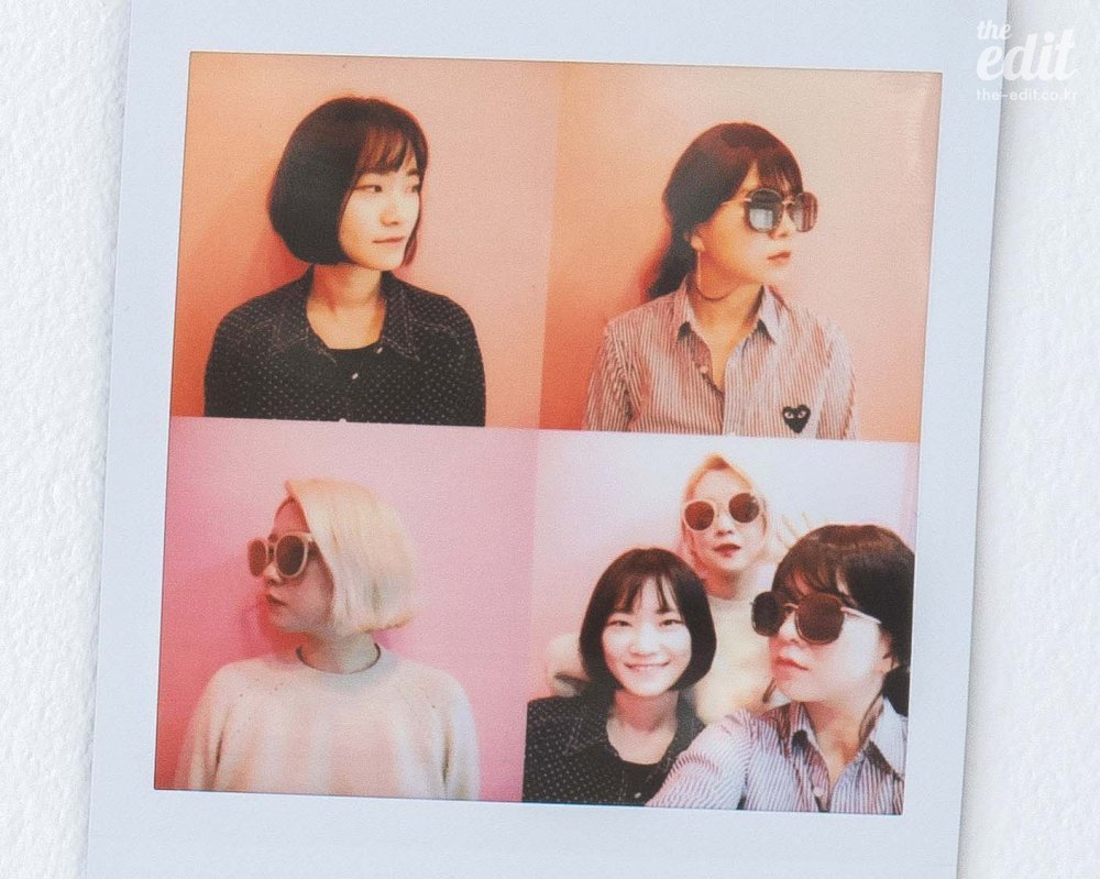실제 가족보다 더 많은 시간을 보내는 디에디트 에디터들. 각기 따로 찍은 사진들도 썸네일 인화 기능을 이용하면 한 장에 담을 수 있다. 포인트는 혼자 핑크빛 배경인 대표님(에디터M). 같은 장소에서 찍었는데 특유의 노랑머리가 화이트 밸런스를 바꿔놓았다.