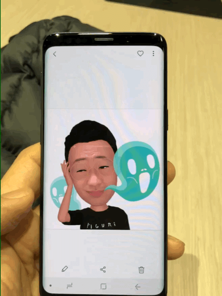 지연 시간은 거의 느끼기 힘들 정도로 짧다. 처음 캐릭터를 생성할 때 시간이 걸릴 뿐 그 이후엔 기본 골격에 매핑을 하는 과정만을 거치기 때문에 비교적 수월하게 동작하는 것으로 예상된다. 나만의 AR 이모지를 이용한 영상통화도 가능하다. 페이스북에 가상의 VR 캐릭터로 커뮤니케이션을 하는 것과 비슷하다. 여러가지 경우의 수를 열어 놓은 것. 삼성은 이번 갤럭시S9을 통해 VR로 가는 길까지 미리 열어놨다.