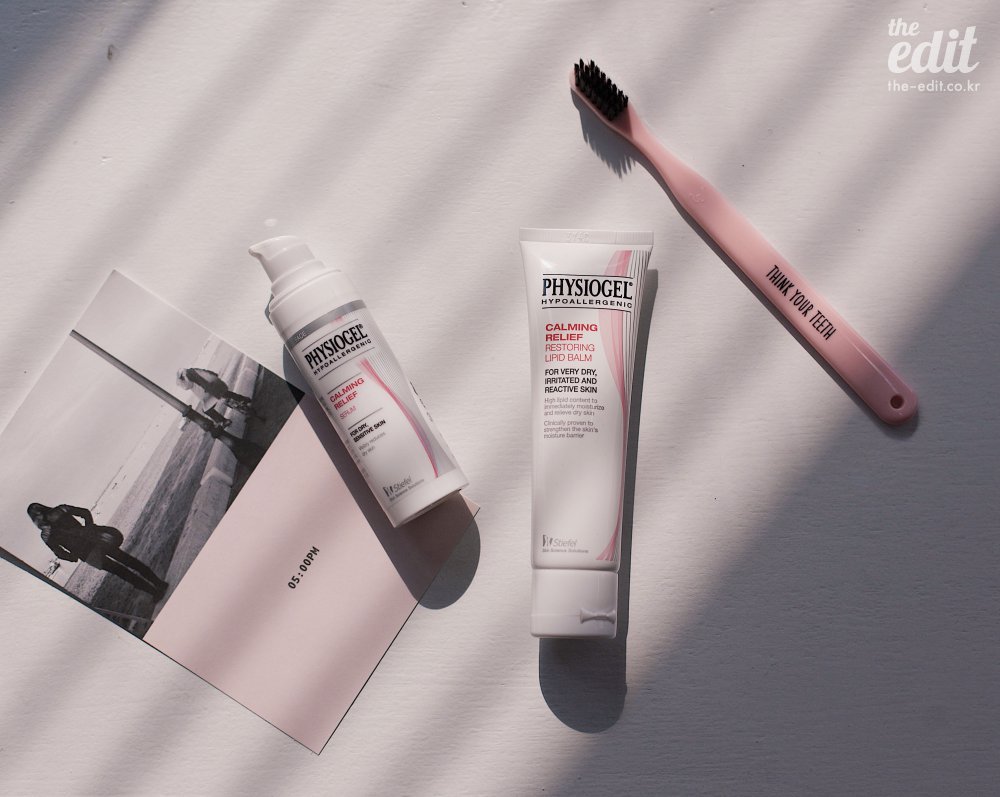 오늘은 이런 내 피부를 구원해준 녀석을 소개하려 한다. 워낙 잘 알려진 제품이지만 그래도 좋은 건 더 널리 알려야 한다. 독일에서 시작해 100년이 훌쩍 넘는 지금까지 나처럼 예민한 피부를 지켜온 브랜드 피지오겔. 순하고 촉촉하기로 유명한 파란색 제품은 다들 한 번쯤 써본 적이 있을지 모르겠다. 그것도 물론 좋지만, 오늘 내가 소개할 것은 분홍색의 카밍 릴리프. 요즘처럼 심한 일교차와 온풍기의 건조함 때문에 점점 더 예민해지는 내 피부에 찰떡처럼 착 달라붙은 아이템이다.