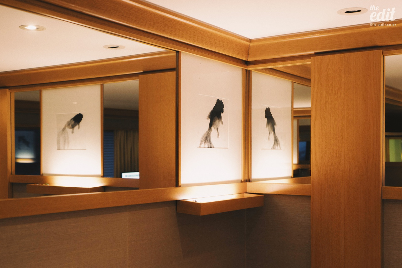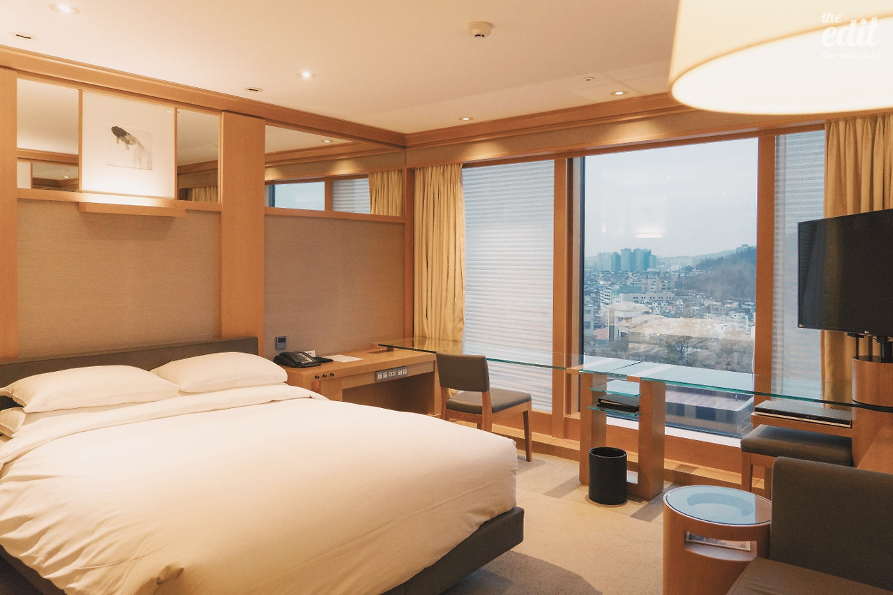 나는 하얏트 브랜드의 호텔들이 전반적으로 가지고 있는 분위기를 좋아한다.노랗고 따뜻한 색의 조명 아래 모든 것이 침착하고 평화롭다. 적당히 올드한 감각이 오히려 마음에 안정을 주는 그런 느낌. 설명이 될지 모르겠다. 한국적인 소품과 거울을 활용한 인테리어다. 엘리베이터에서 내리는 순간부터 객실까지 통일된 디자인이 돋보였다.