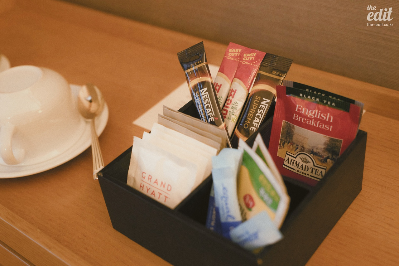 미니바의 제품과 상비된 커피, 티도 실망스러웠다. 네스프레소는 고사하고 인스턴트 커피와 동서 녹차 티백이라니. 이렇게 촌스러울 수가.